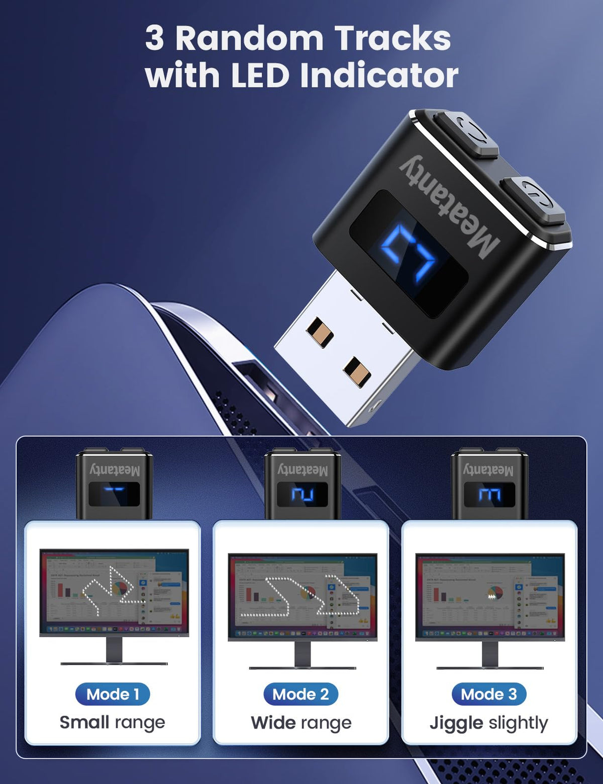Meatanty Metal Tiny Mouse Jiggler, Usb Mouse Mover Undetectable, Automatic Wiggler With Screen, 3 Modes Mouse Moving Device, Min