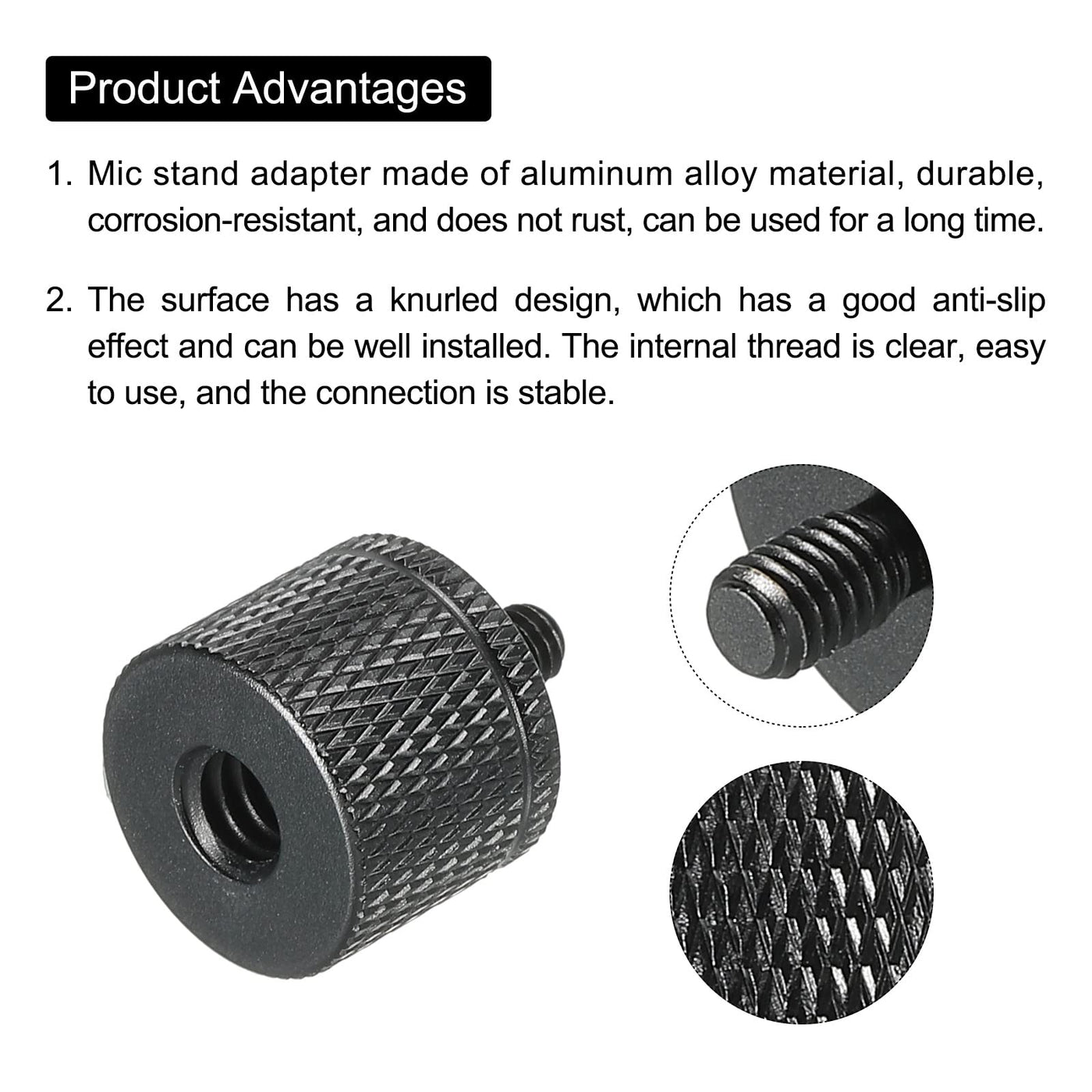What Is This?The Mic Stand Adapter Is Mainly Used For Fixed Installation Of Microphone Stands, Suitable For Most Types Of Microphone Stands, Camera Stands And Recorder Stands.What Will I Get?Camera Screw Thread, We Provide Here, Are In The Size Of:Material: Aluminum Alloycolor: Blackbody Height: 13Mm / 0.59 Inchthread: 1/4 Female To M4 Malethread Pitch :20G X 0.7Mm(Female X Male)Total Size:16Mm X 20Mm / 0.63 X 0.79 Inch (D*H)In The Package Of: 1 Pack X Mic Stand Adapteris There Any Advantages Of The Product?1. Mic Stand Adapter Made Of Aluminum Alloy Material, Durable, Corrosion-Resistant, And Does Not Rust, Can Be Used For A Long Time2. The Surface Has A Knurled Design, Which Has A Good Anti-Slip Effect And Can Be Well Installed. The Internal Thread Is Clear, Easy To Use, And The Connection Is Stable.How To Use It?Select A Suitable Threaded Connector According To Your Needs, And Screw It On The Fixing Hole Of The Microphone Stand.What Should I Notice?All Size Above Is Measured By Manual, Please Allow +/-0.1 Inch Error.