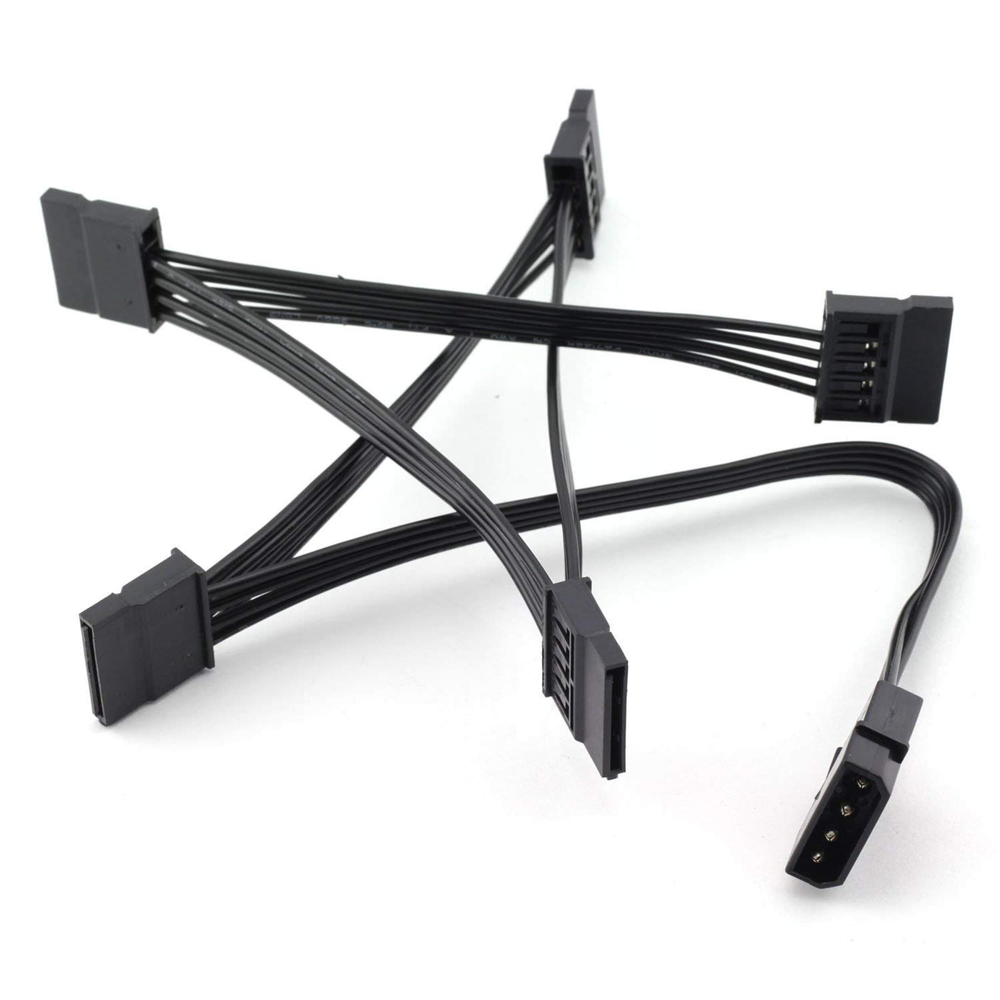 Meetoot 2Pcs Ide To Sata Power Cable Ide Large 4 Pin To Pc Server Hard Drive 15 Pin Sata Power Supply Adapter Converter Cable Cord 18Awg Wire Sata Extension Cable 1 To 5 Splitter Black
