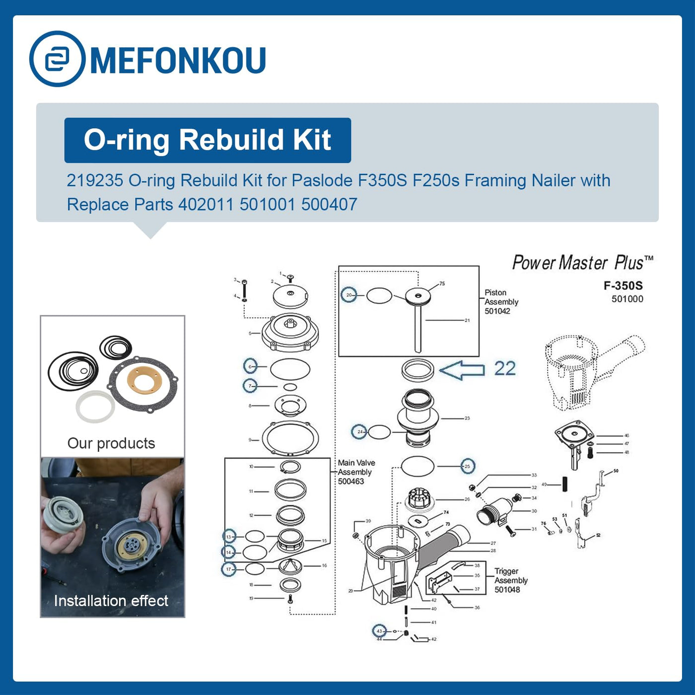 Mefonkou 219235 O Ring Repair Kit Replace Parts 402011 501001 500407 For Paslode F350S F250S Framing Nailer