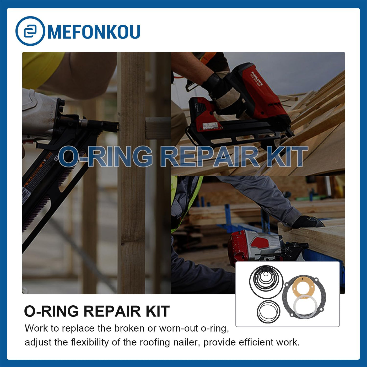 Q: What material are the O-Rings made of?A: The O-Rings in the MEFONKOU kit are made of high-quality rubber, ensuring durability and effective sealing for your framing nailer.
