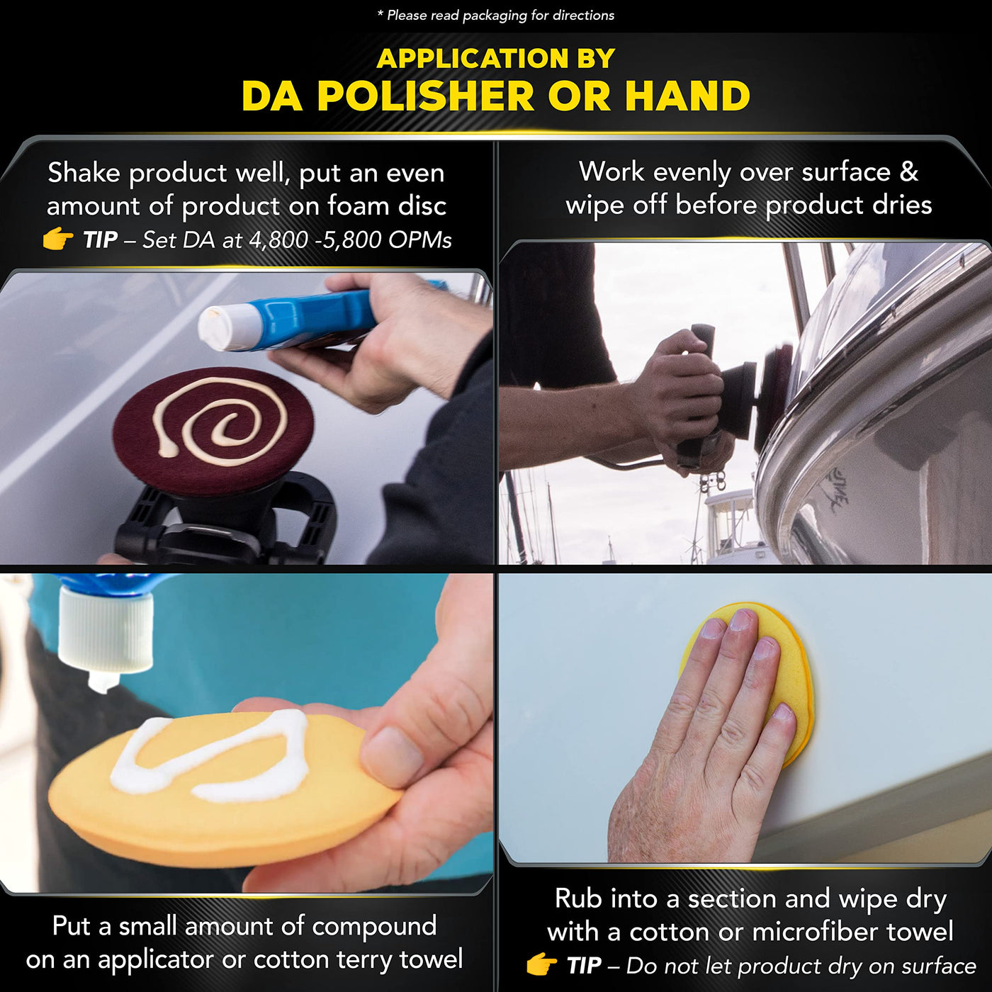 Meguiar'S Marine/Rv Heavy Duty Oxidation Remover Is The Fast And Powerful Solution For Surface Defects. Use Our Rv And Marine Cleaner To Safely Remove Light To Moderate Oxidation, Stains, Scratches And Tough Water Spots From Gel Coat, Fiberglass And High-Tech Paint Surfaces. Our Unique Formula Restores The Original Color Of Older Fiberglass Gel Coat Surfaces By Effectively Removing Surface Degradation With Specialized Diminishing Abrasives That Break Down And Safely And Disappear During Application. Enriched Feeder Oils Further Enhance The Finish And Restore The Original Color While Adding Brilliant Shine And Gloss. (1) Title Draft Language Created By Generative Ai And Reviewed, Edited, And Revised By Meguiars.
