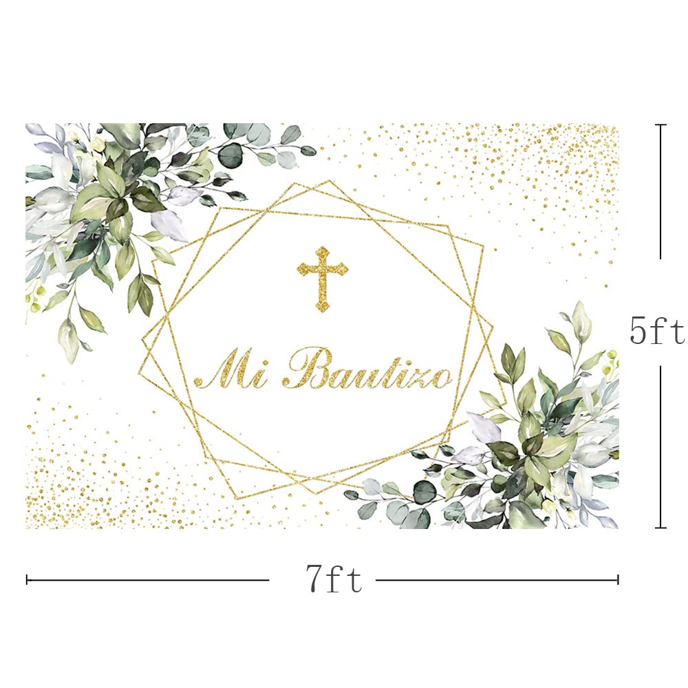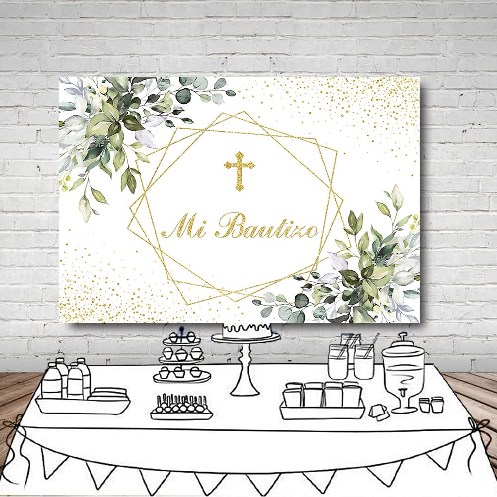 Mehofond Mi Bautizo Backdrop Mexican Baptism Party Supplies First Holy Communion Newborn Baby Shower Gold Glitter Background Gre