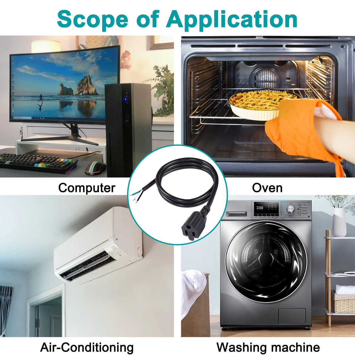 Q: Can the tail end of the power cord be customized for specific equipment?A: Yes, the tail end of the 3-prong heavy duty cord can be welded to the equipment. You can solder the bare tail connector of the power cord to the power port of your device for a stable connection.
