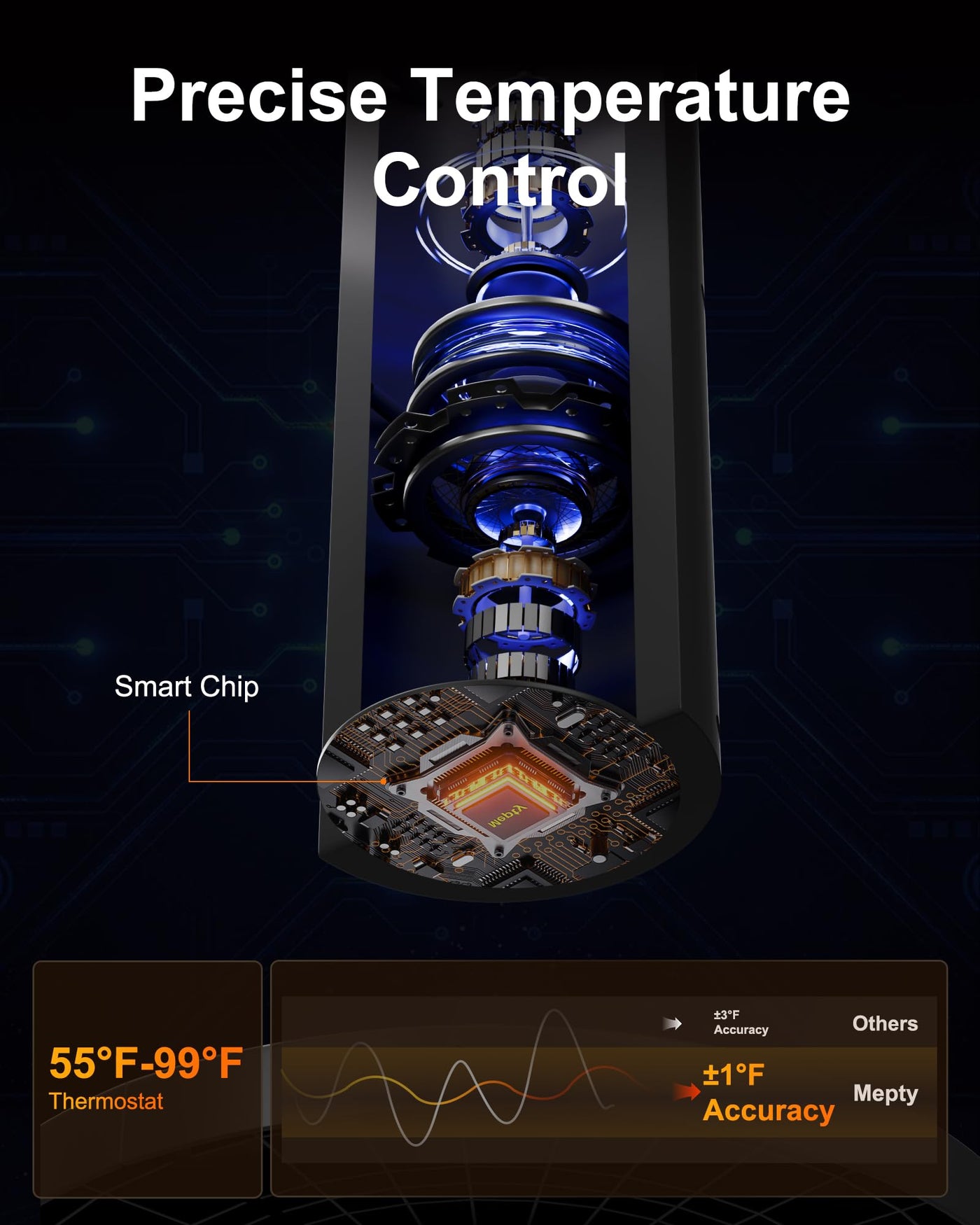 Q: How does the MEPTY Space Heater operate?A: To use the MEPTY Space Heater, simply plug it in, set your desired temperature on the adjustable thermostat, and enjoy the warmth.