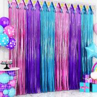 Mermaid Birthday Decorations: 2 Packs Of Blue Purple And Hot Pink Foil Fringe Curtains 3.3 X 6.6 Ft. Per Pack, Perfect For Different Party Themes, Like Mermaid, Euphoria Party Theme Decorations Provide You With Excellent Beautiful Decorations Effect And Light Up Your Romantic Backdrop Birthday Party Atmosphere. If You Want To Make Your Backdrop Curtain Look Fuller And Thicker, You Can Overlap Two Curtains. | Fringe Curtains Materials: These Mermaid Birthday Party Decorations Theme Metallic Foil Tassel Curtains Are Made Of Tinsel, They Are Lightweight Tassel Curtains That Are Unbreakable, The Metallic Party Streamers Reflect Light Beautifully, Creating A Mesmerizing Visual Effect, Blue Purple And Fuchsia Foil Fringe Curtains Easy To Use And Hold Securely In Place Throughout The Mermaid Style Kids Baby Shower Decorations Party For Long Lasting. | Easy To Use: Tear Off Double-Sided Adhesive Tape, Then Paste The Mermaid Birthday Decorations On The Top Of Your Desired Location, Suitable For The Doorway, Window, Wall, Living Room, Dessert Table Backdrop, And Stage Background Decorations. Our Unique Tinsel Foil Fringe Curtains Are The Perfect Photo Backdrop For Every Mermaid Theme Birthday Decorations And Ocean Decor And Will Make The Party Brilliant And Remembered. | Widely Applications: These Rainbow Foil Fringe Curtains Backdrops Are Perfect For A Live Streamer Backdrop, Hollywood Party, Christmas, Birthday, Rainbow-Themed Party, Bachelorette Party, Engagement Party, Bridal Shower, Baby Showers, Graduations, Wedding Or Anniversary. You Can Diy Put Commemorative Photos, Balloons, Banners, Led Decorations And Various Photo Props On This Backdrop! | Service: To Ensure That Foil Fringe Curtains Stay In Place And Can Be Easily Removed Without Any Damage, Please Use Your Own Scotch Tape If You Are Hanging Them On A Painted Wall, Door Frame, Or Unsmooth Walls, Or If You Want To Reuse Them For Next Time. If You Feel Unsatisfied For Any Reason While Using Our Mermaid Birthday Party Decorations Foil Fringe Curtains, Please Feel Free To Contact Us By E-Mail,We Will Reply To You Within 24 Hours.
