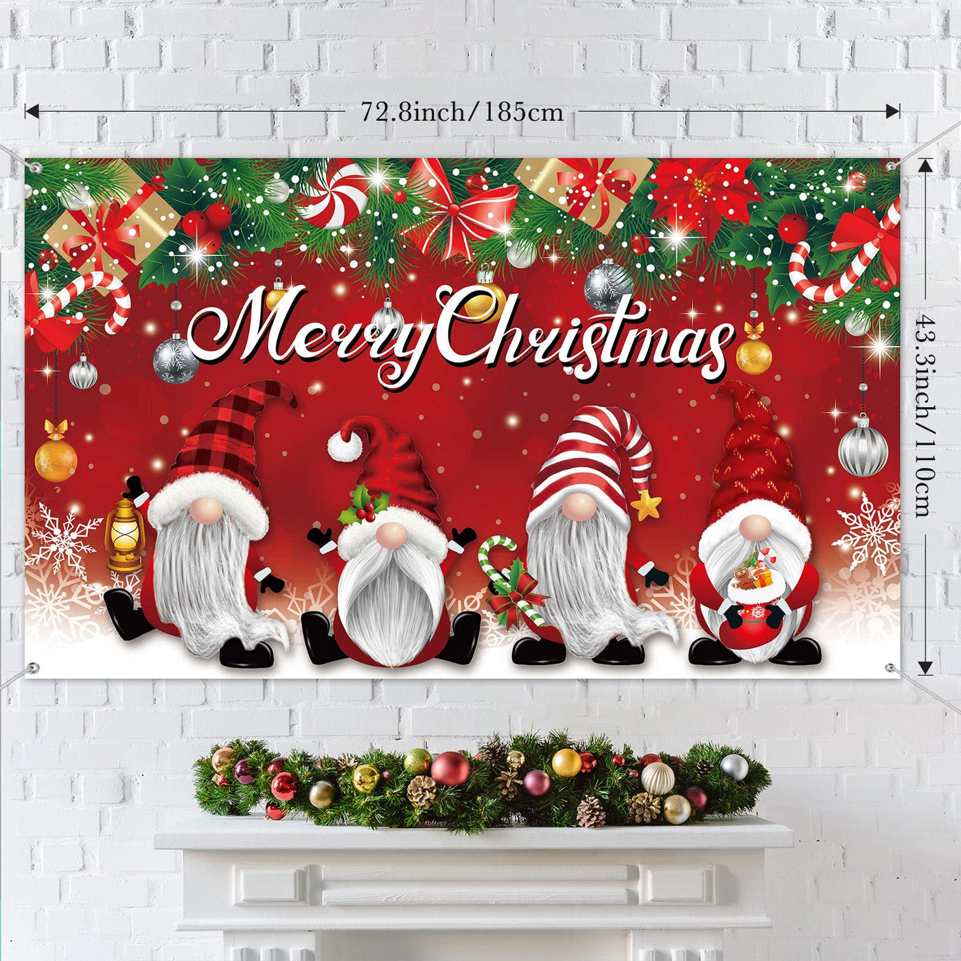 Merry Christmas Party Backdrop Decorations Large Fabric Red Xmas Gnome Banner Photo Booth Background For Christmas Winter Holida