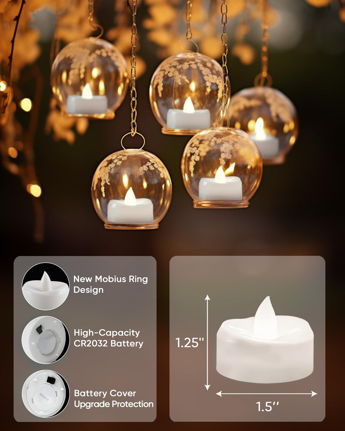 Merrynights Flameless Candles, 24 Pack Led Tea Lights Candles Battery Operated, Last 200+ Hrs Flickering Tea Lights For Halloween Diwali Fall Christmas Wedding Pure White