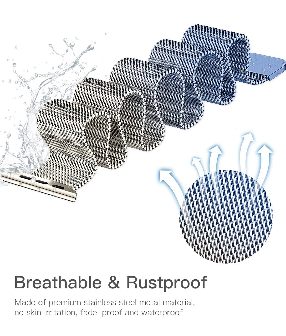 Rabini Stainless Steel Band Compatible With Apple Watch 38Mm 40Mm 41Mm 42Mm 44Mm 45Mm 46Mm 49Mm, Specially Designed For Women And Men.46Mm 42Mm(Series 10) Bands Compatible With Apple Watch Series 10 (2024);45Mm 41Mm Bands Compatible With Apple Watch Series 9 (2023), Series 8 (2022) And Series 7 (2021);49Mm Bands Fit For Apple Watch Ultra;44Mm 40Mm Bands Compatible With Iphone Watch Se 1St And 2Nd Generation, Series 6 (2020), Series 5 (2019) & Series 4 (2018);42Mm 38Mm Bands Compatible With Apple Watch Series 3 (2017) & Series 2 (2016) & Series 1 (2015).Please Choose The Correct Watch Model And Size For Yourself.Size Reference38Mm/40Mm/41Mm/42Mm(Series 10) Size Fits Wrist 5.5 -7.9 (140Mm-200Mm) In Circumference;49Mm/46Mm/45Mm/44Mm/42Mm(Series 3/2/1) Size Fits Wrist 5.9 -8.9 (150Mm-225Mm) In Circumference.Waterproof & Rustproofmade From Premium Stainless Steel Metal Material, The Sleek Iwatch Mesh Loop Band Is Sturdy,Rustproof, Fade-Proof And Easy To Maintain. It Is The Best Companion For Daily And Outdoor Sports Such As Running And Swimming,A Great Affordable Option For Your Apple Watch Accessories.About Stainless Steel Metal Iwatch Band Designthe Apple Watch Sport Loop Is Designed With Magnetic Adjustable Clasp That Makes The Smartwatch Band Easier To Put On And Take Off. And The Magnets Hold The Band Snugly On Your Wrist, Preventing Your Apple Watch From Falling Off, Safer & Stronger.Our Apple Watch Metal Band Feature An Advanced Mesh Weave Construction, So The Water In Your Wrist Dries Easily, Making You Feel More Comfortable.Wear It Your Waydecorate With Rabini Replacement Bands To Identify Your Apple Watch And Show Your Personality And Luxurious.A Ideal Gift For Your Love, Your Mate, Family, Friends During Thanksgiving, Christmas, Birthday, New Year.