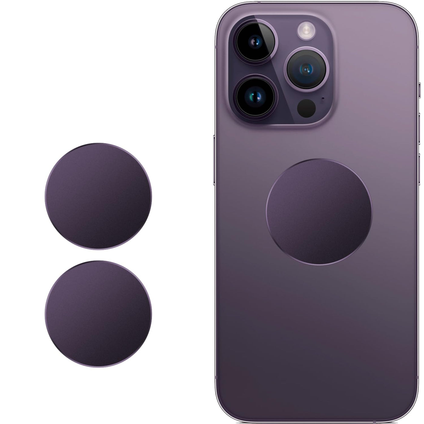 Metal Ring Plate For Phone Mount Car Holder Metal Stickers Plate Phone Magnet (Compatible With Magnetic Mounts) 1.50'' Frosted Round, Purple 2 Pack