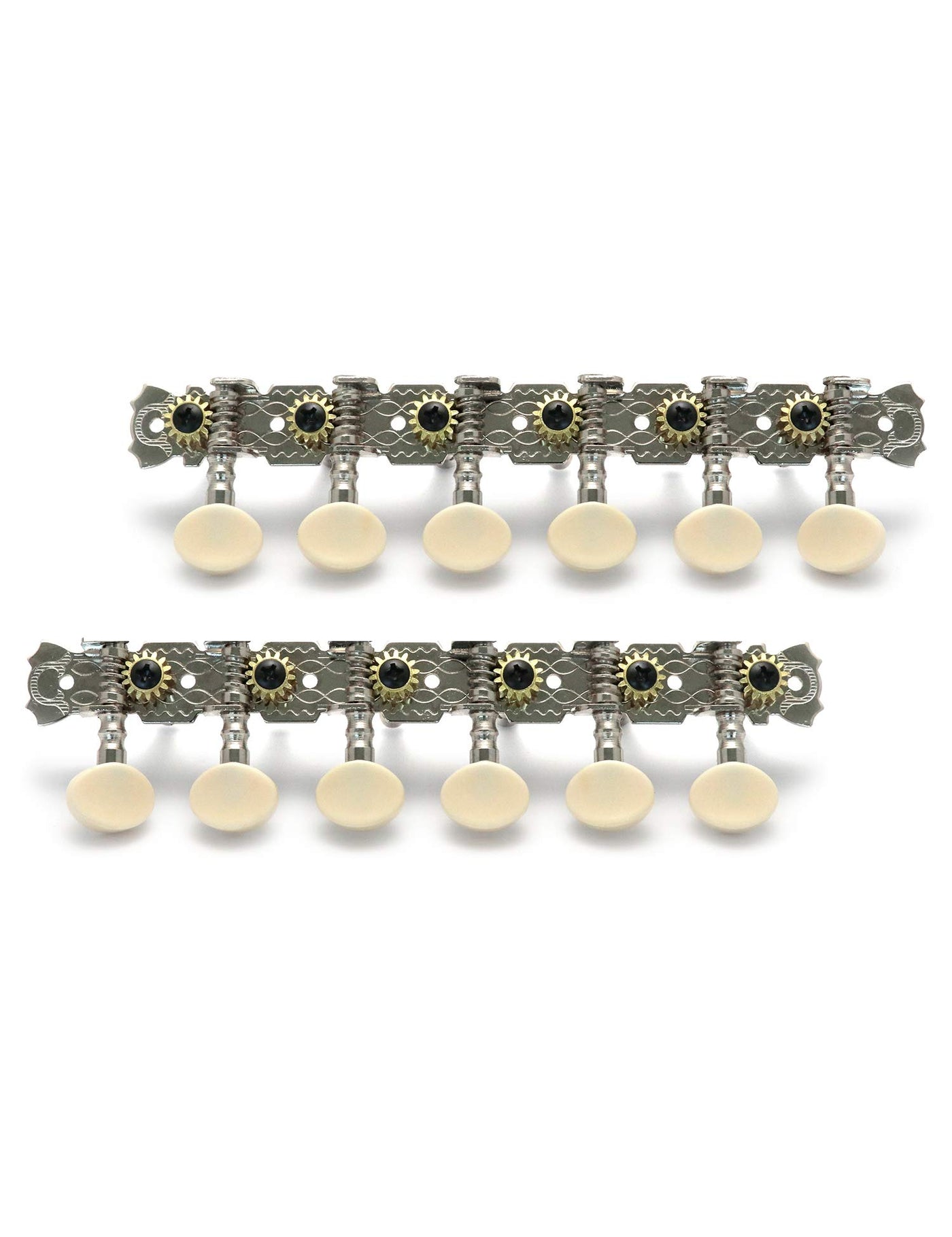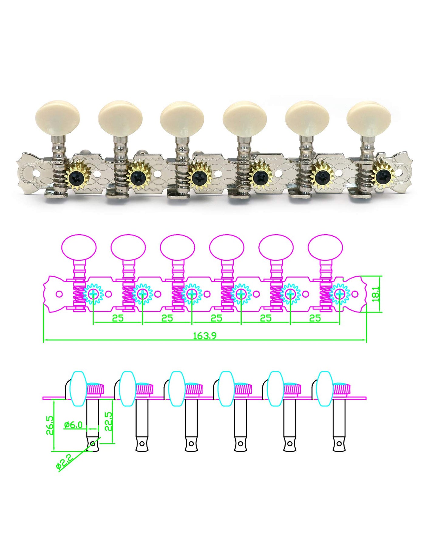 Specification Color: Chrome & Creamy-White Material: Metal & Plastic Package Size: 13*21Cm / 5.12*8.27In Package Weight: 230G / 8.1Oz Installation Diameter 8Mm Ratio 1:14 Geared Location: 3L/3R Package Include 6 X Right Guitar Machine Heads 6 X Left Guitar Machine Heads 12 X Washer 14 X Screws 100% Brand New, Never Used Note Light Shooting And Different Displays May Cause The Color Of The Item In The Picture A Little Different From The Real Thing. The Measurement Allowed Error Is +/- 1-3Cm. Please Check All The Photos In Detail And Confirm The Size Before Buying.