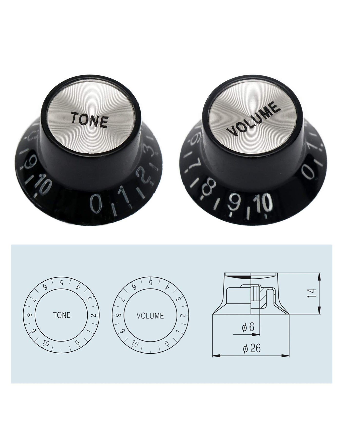 Product Descriptiontop Quality Knobs For Electric Guitars, Volume & Tone, In Colors, Black.Push Fit, There Are Identical Spec, As Fitted To Many Top Range Guitars. The Volume & Tone Words Are Very Fine And Precisely Printed On The Cap Insert. Designed To Fit Split Shaft 6Mm With 18 Spline Pots. Can Also Be Used On A Range Of Electric Guitars Including: Les Paul Style Electric Guitars. About Usmetallor Is A Branch Of Sunsmile Group,Which Was Had Over 20 Years Of Experience In The Musical Instrument Field. We Are The Leading Company That Can Supply A Full Range Of Guitar Parts, Such As Necks, Bodies, Hardware, Pickups Etc. Our Precise Production Equipment And Experienced Staff Assure You Of The Finest Quality Parts. Cooperating With Guitar Manufactures, Our Parts Are Widely Used On Famous Guitars, Musicians, Repairers, Luthiers And Factories Deserve Metallors Quality Parts And Professional Service. As One Member Of The Worlds Largest Top 225 Manufacturers, We Provide A One-Step Service For Other Sunsmile Products. If You Have Any Questions Before, During Or After Purchase, Please Feel Free To Contact Us.