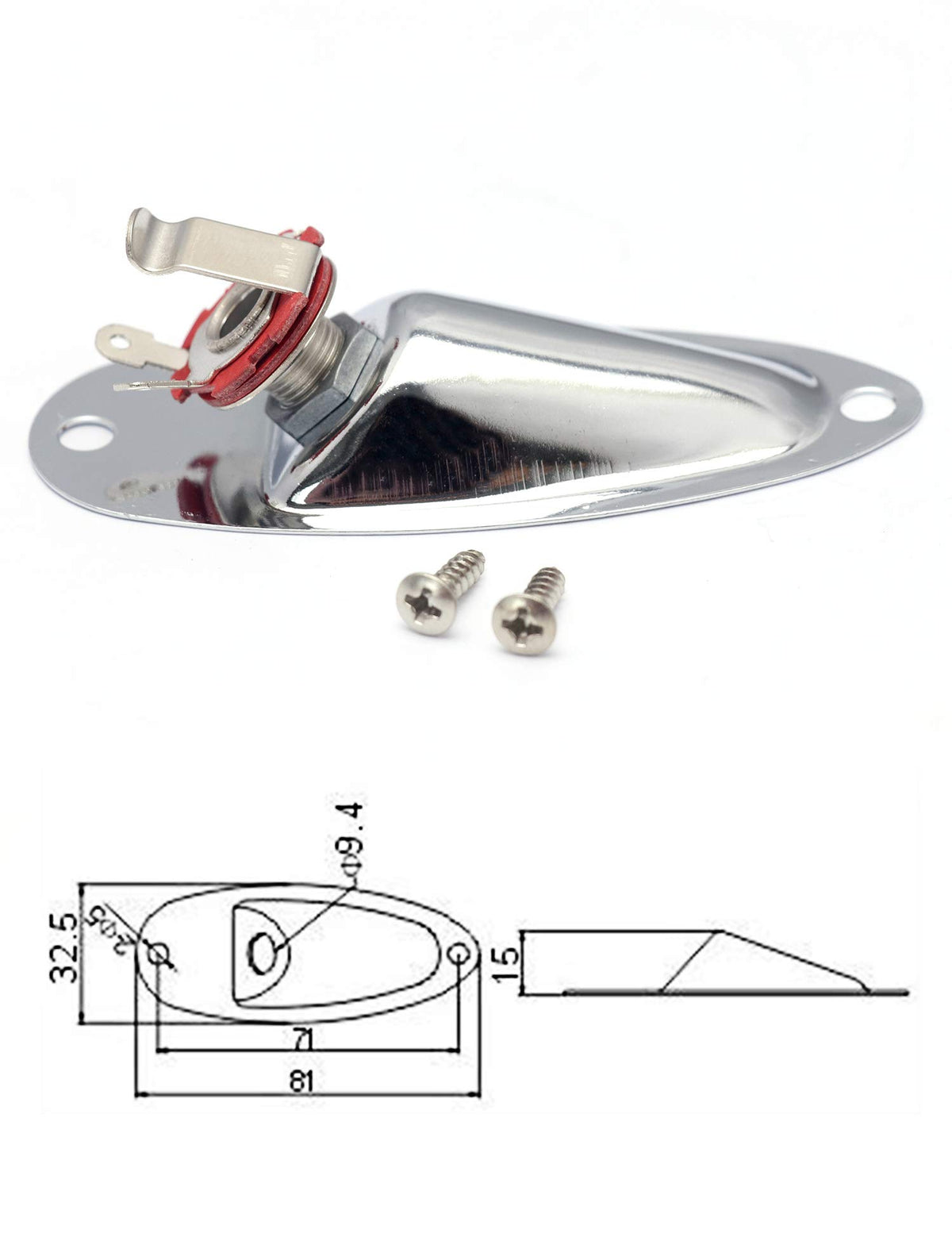 Product Description * Brand New Chrome Metal Jack Socket Mounting Plate As Typically Found On Strat Type Guitars Often Referred To As A Boat Shaped Mount Can Be Used For Other Model Electric Guitars Requiring A Similar Jack As Well,Ascrews Includeda * Ideal For Fender Stratocaster Or Similar Guitars * This Shiny Boat-Style Jack Plate Brings A Nice Shiny Finish To Your Instrument * It Can Give Your Guitar A Bit Of An Upgrade Specification Material: Metal Size: Approx81X325Mm319X130Inch Mounting Screw Spacing: 71Mm Jack Hole Width: 94Mm Color: Chrome Package Include 1 X Jack Socket Plate For Fender Strat Electric Guitar 2 X Screws Note Items Color Might Be Different From The Picture Because Of The Aberration