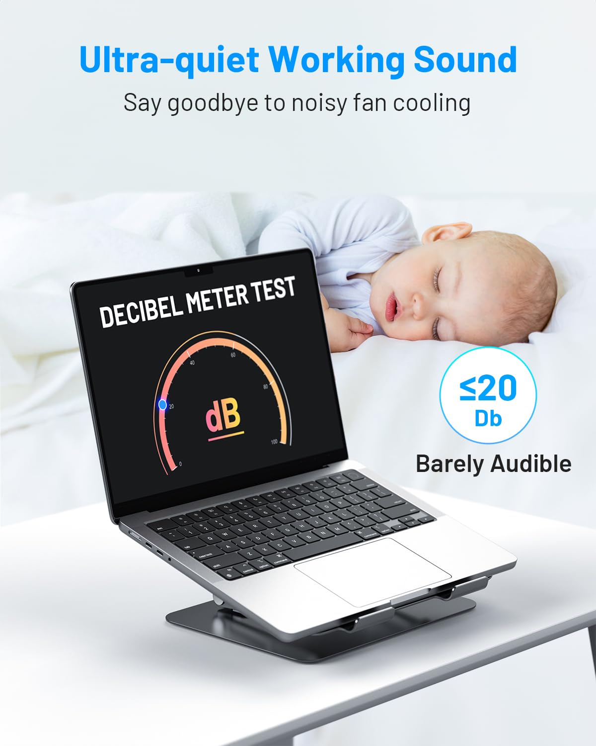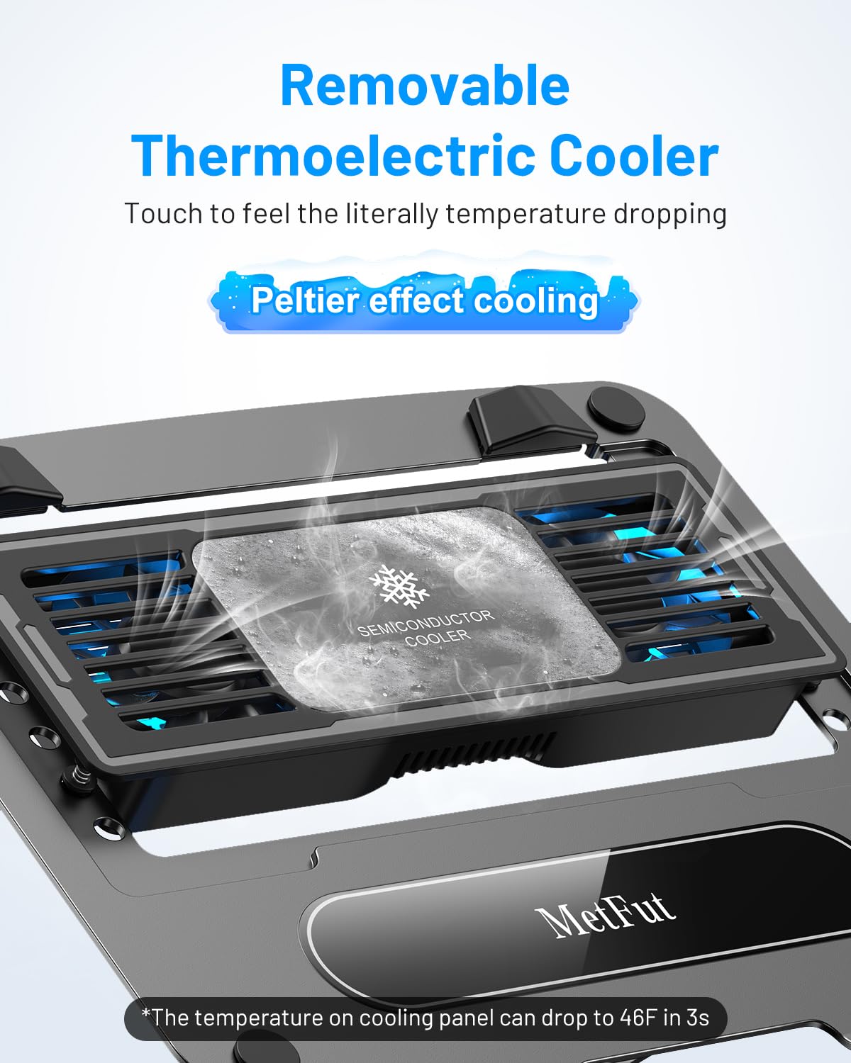 Metfut Laptop Cooling Stand With Detachable Thermoelectric Cooler, Adjustable Height & Angle, 360 Rotation Base, Carbon Steel Fr