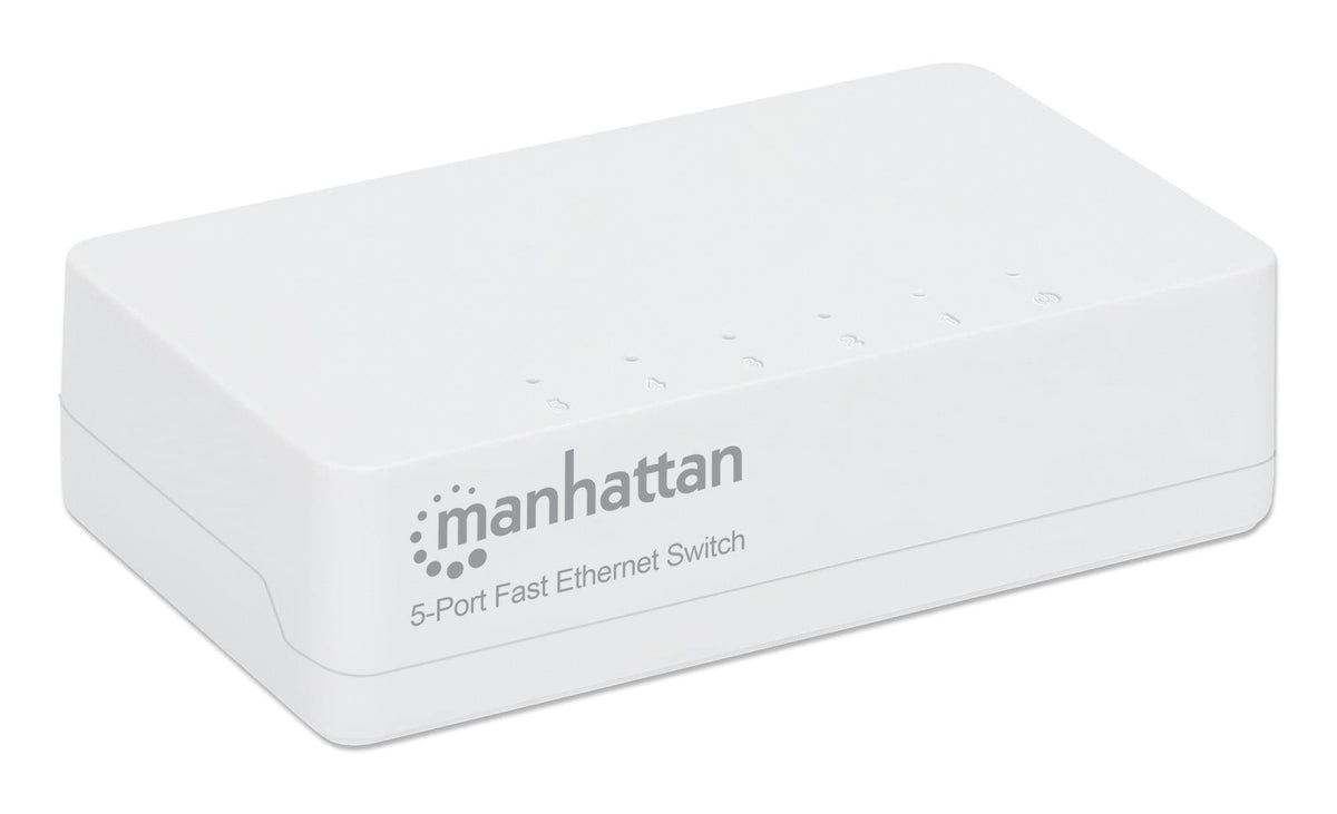 Manhattan 560672 Manhattan 5-Port 10100 Desktop Switch, Plastic Housing - Supports Any Combination Of 10 Mbps Or 100 Mbps Network Devicesoverview: Easily Add More Computers Or Other Ethernet Devices To Your Home Network With The 5-Port Fast Ethernet Switch With Easy Plug-And-Play Installation, The Durable, Reliable Switch Is Perfect For The Home Environment And Small-Size Business Simply Power It Up And Start Using It Fast Ethernet Switch Works With Any Operating System And Connects Up To Five Computers, Servers, Printers, Switches Or Any Other Ethernet Devices At 10 Or 100 Mbps Over Ethernet Cables The Auto Features Of This Ultra-Compact Switch Make Installation Hassle-Free With No Configuration Required You Dont Need To Worry About Using Special Cables For Uplink Ports Since Each Port Is Equipped With Auto Mdimdi-X Crossover Switch Is Compatible With All Windows And Mac Systemsspecification: General Informationmanufacturer: Manhattanmanufacturer Part Number: 560672Brand Name: Manhattanproduct Name: 5-Port Fast Ethernet Switchpackaged Quantity: 1Product Type: Ethernet Switchinterfacesportstotal Number Of Network Ports: 5Token Ring Port: Nolre Port: Nobypass: Nomodular: Nonumber Of Network (Rj-45) Ports: 5Portexpansion Slot Details: 5 X Fast Ethernet Networkmedia & Performancemedia Type Supported: Twisted Pairtwisted Pair Cable Standard: Category 5Ethernet Technology: Fast Ethernetnetwork Technology: 10100Base-Txnetwork & Communicationlayer Supported: 2Power Descriptionpoe (Rj-45) Port: Noinput Voltage: 5 V Dcpower Source: Ac Adapterphysical Characteristicscolor: Whiteform Factor: Desktopheight: 09Width: 38Depth: