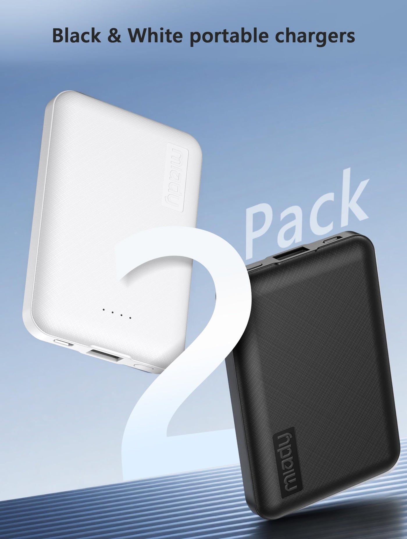 Miady 2 Pack 5000Mah Mini Portable Charger, Power Pack With 5V 2.4A Usb C Output, Power Bank Phone Charger For Iphone 15/14/13/12/... Series, Android Phones And Etc
