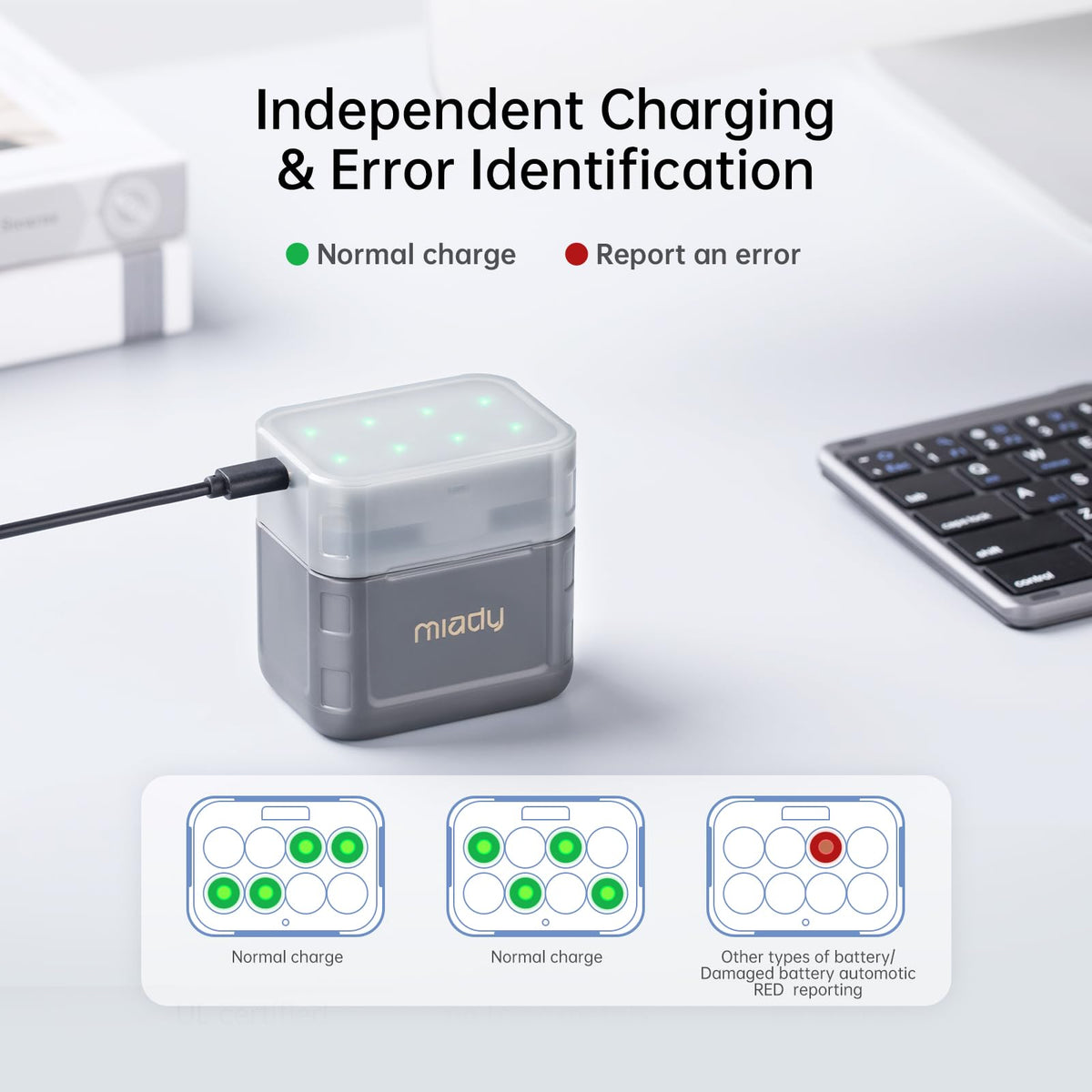 Miady 8-Pack Rechargeable Lithium Aa Batteries With Fast Charger, 1.5V 3000Mwh High-Capacity Lithium Aa Batteries, High-Power Double-A Batteries