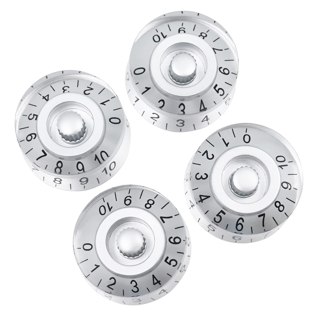 Micovay 4Pcs Volume Tone Speed Control Knobs Hat Shape For Les Paul Lp Style Bass Electric Guitar Parts, Transparent Silver With