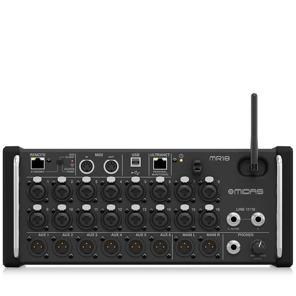 Midas Mr18 18 Input Digital Mixer For Ipad/Android Tablets With 16 Midas Pro Preamps, Integrated Wifi Module And Multi Channel U