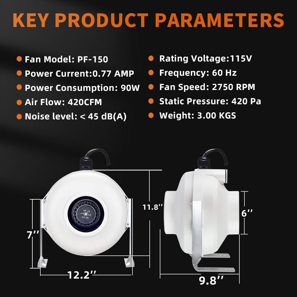 Product Features Inline Duct Fan Series - Radon Mitigation System Fan -Quiet And Energy Efficient 380Cfm Radon Mitigation Inline Duct Fan -6 Electric Inline Fan With Quiet Energy Efficient Operation -Easy To Install At Home With Simple Design And One-Click Wiring -Indoor Outdoor Use, Ip67 Waterproof Exhaust Fan -Easy To Connect Wires, Use U.S. Local Motor And Compressed Molded Housing -Extra Screws, Mounting Brackets And Installation Instructions Included, Help You Finish Install Instantly.