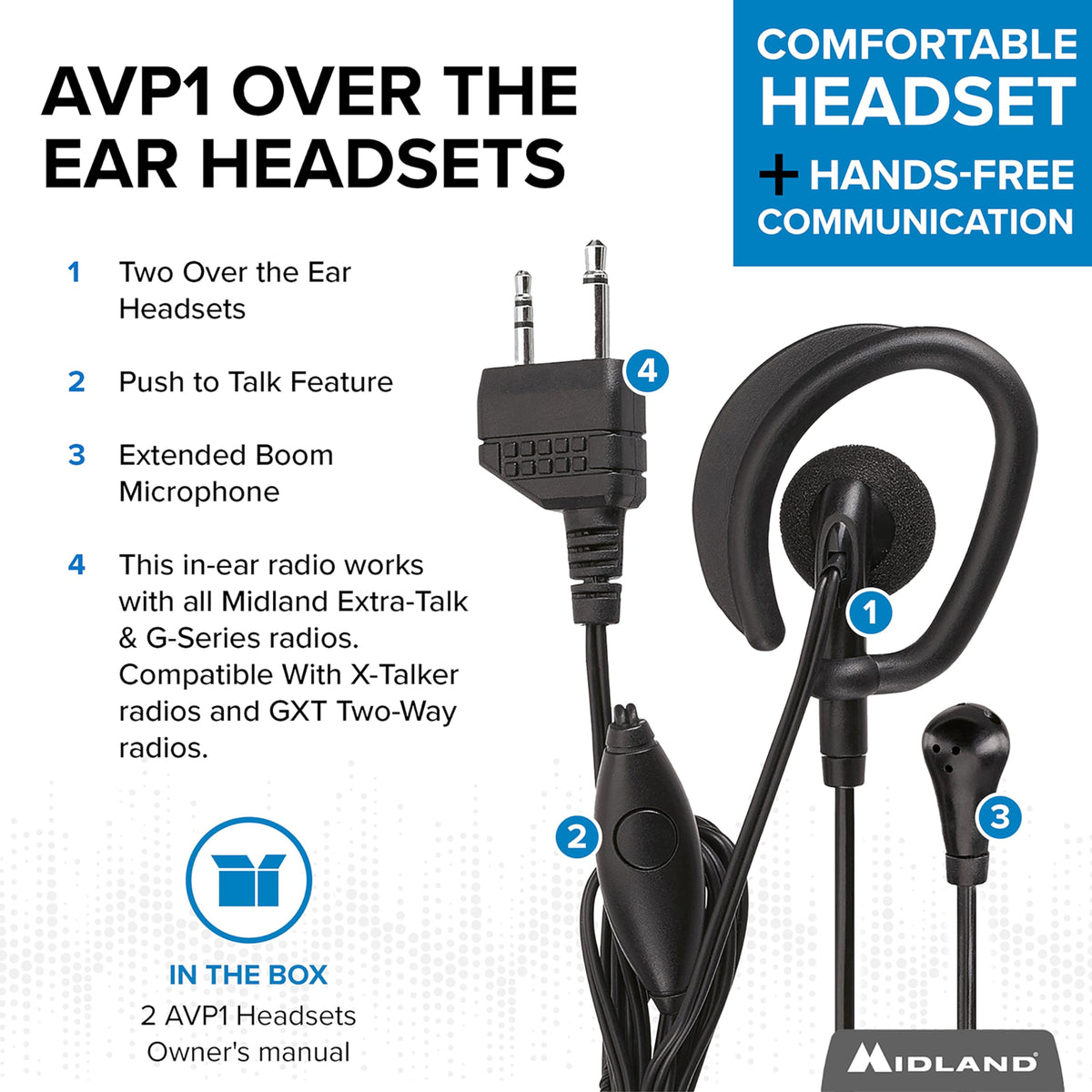 Midland�� Avp 1 Headset � Over The Ear Headphones With Extended Boom Microphone � Comfortable Headset For All Gmrs Midland� Two Way Radios And Walkie Talkies