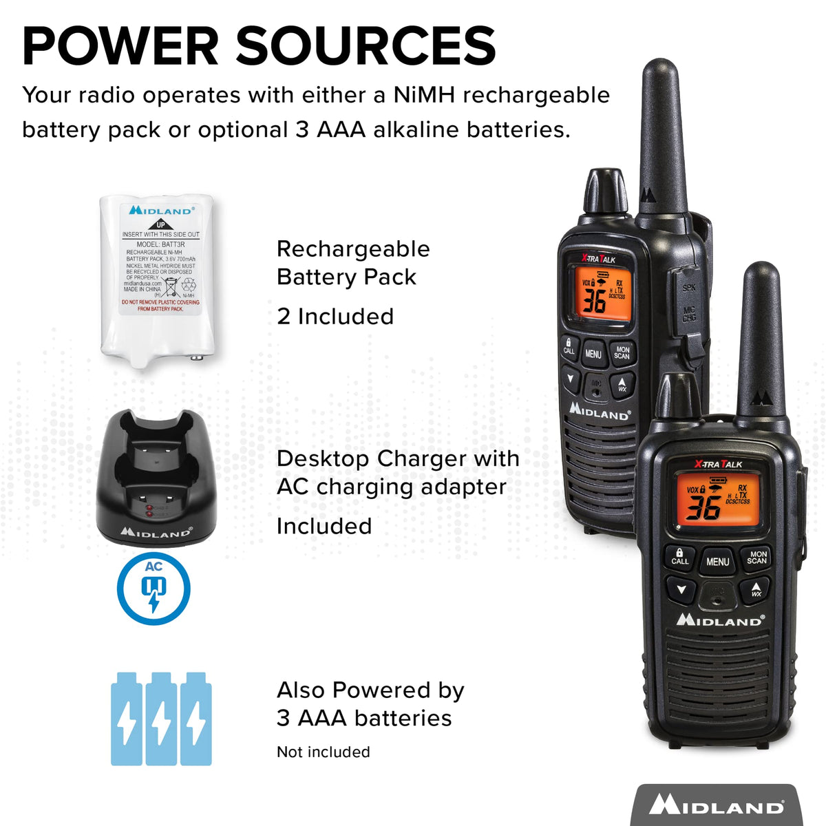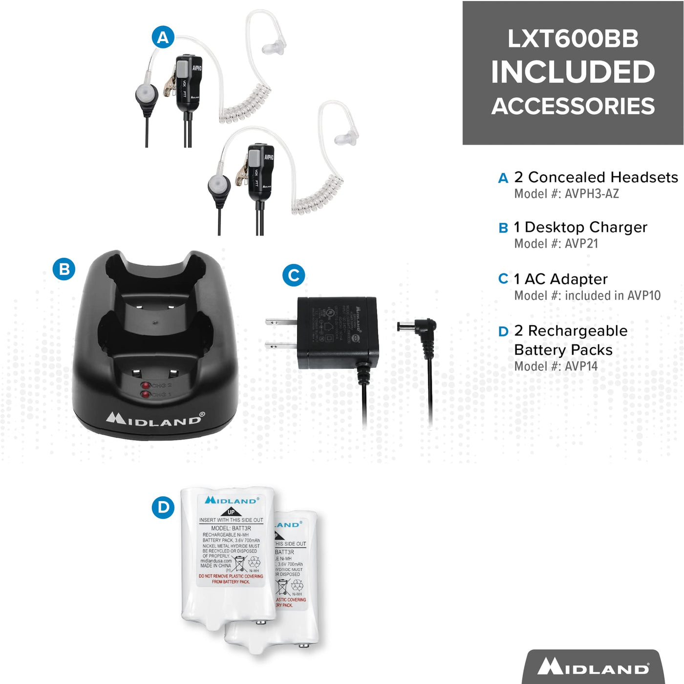 Midland Lxt600Bb Frs Walkie Talkie Set Long Range Two Way Radio With Noaa Weather Alert Technology, 36 Channels, And Silent Operation (Black, 2 Radio Set)