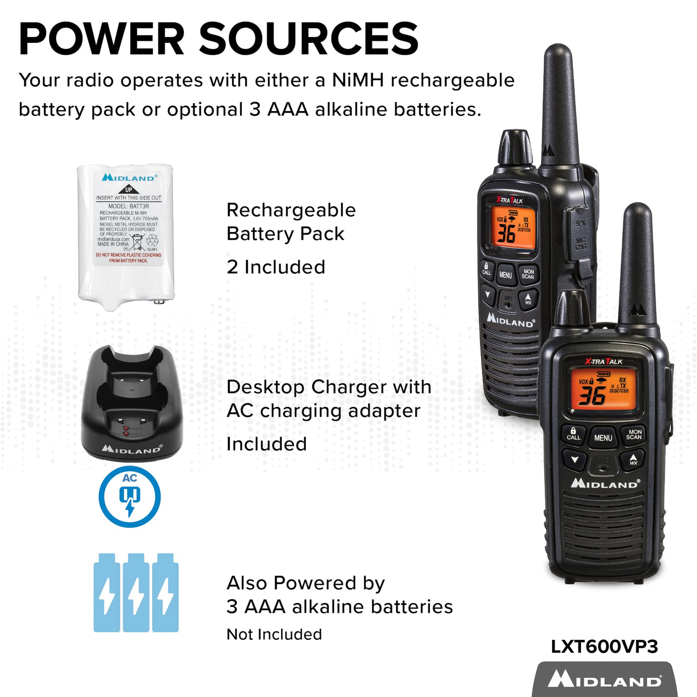 2-Way Radios: The Walkie-Talkies Are Equipped With 36 Frs (Family Radio Service) Channels, And Communication Options. Additionally, They Offer A Convenient Channel Scan Feature That Allows Users To Easily Check For Activity On Different Channels. For Power, These Walkie-Talkies Offer Dual Options. They Can Be Powered By The Included Rechargeable Battery Pack, Providing A Reliable And Reusable Energy Source. Users Have The Option To Use 3 'Aaa' Batteries (Not Included) For Flexibility. | Up To 30-Mile Range: Unlock The Power Of Long-Range Communication Capabilities In, Unobstructed Environments With Minimal Or No Obstacles. With Enhanced Signal Reach, These Devices Enable Seamless And Reliable Connections Over Greater Distances. Enjoy Clear Communication Across Open Spaces, Whether Exploring Vast Outdoor Landscapes, Participating In Outdoor Events, Or Engaging In Professional Activities. Benefit From Extended-Range Capabilities To Stay Connected, And Coordinate Efficiently. | 121 Ctcss Privacy Codes: With Privacy Codes, The Continuous Tone-Coded Squelch System Provides A Wide Selection Of Up To 2,662 Channel Options. These Codes Offer The Ability To Block Out Other Conversations, Ensuring Clear And Interference-Free Communication. The Walkie-Talkies Feature A Silent Operation Mode, Allowing Users To Turn Off All Tones And Operate Discreetly Without Any Audible Signals. This Feature Proves Particularly Useful In Situations Where Silent Communication Is Desired. | Noaa Weather Scan: Stay Informed And Prepared With The Noaa Weather Scan + Alert Feature. With This Functionality, Your Walkie-Talkies Automatically Scan Through 10 Weather Channels, Identifying And Locking Onto The Strongest Weather Channel Available. This Ensures That You Receive Critical Updates And Alerts Regarding Severe Weather Conditions. When A Potential Risk Of Severe Weather Is Detected, The Noaa Weather Alert Triggers An Audible Alarm, Notifying You To Take Necessary Precautions. | Included In The Box: Radios (X2), Belt Clips (X2), Rechargeable Battery Packs (X2), Desktop Charger, Ac Adapter, Owner'S Manual