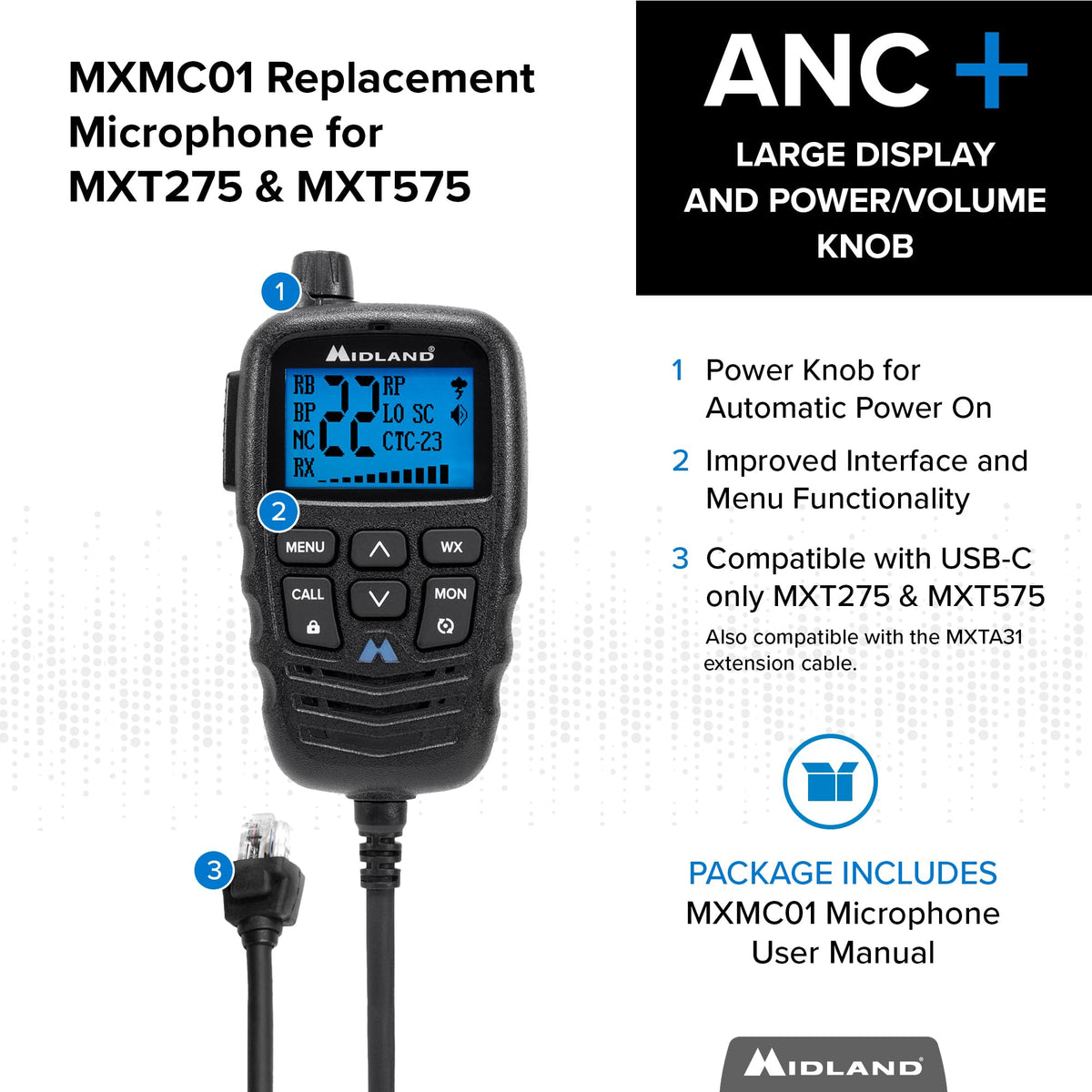 Midland � Mxmc01 | Replacement Microphone For Mxt275 & Mxt575 � Anc Automatic Noise Canceling Electronic Microphone � Off Roading Loud And Open Air Vehicle Gmrs Farming Overlanding