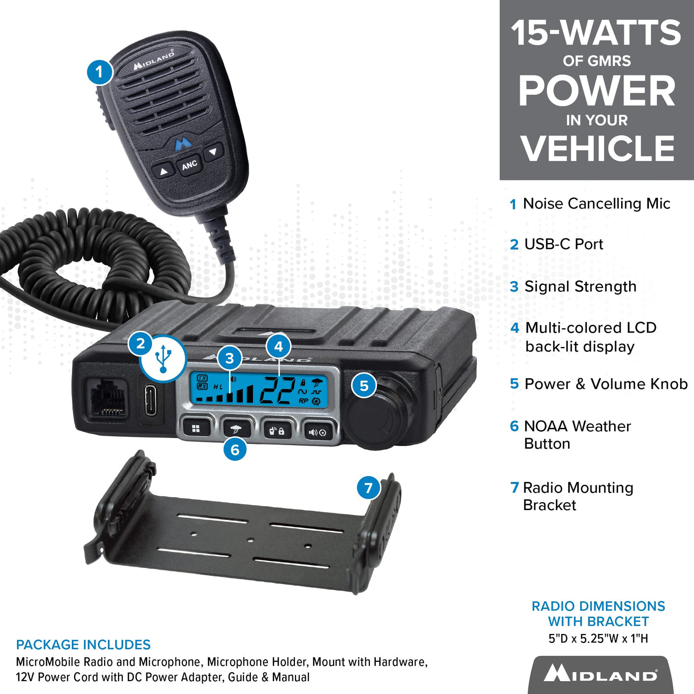 Midland � Mxt115Agvp3 15 Watt Gmrs Micromobile Two Way Radio Off Roading Outdoor Farm Radio Extended Range 3Db Gain Ghost Antenna, Antenna Cable, Mounting Bracket Farm Tractor Bundle