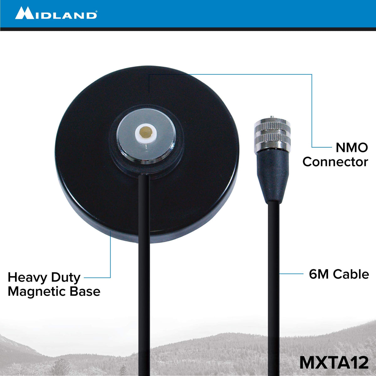Midland � Mxta12 Micromobile Antenna Mag Mount With Nmo Connector And 12 Foot Cable � Compatible With Mxt105, Mxt115, Mxt275, Mxt400, Mxt500, And Mxt57