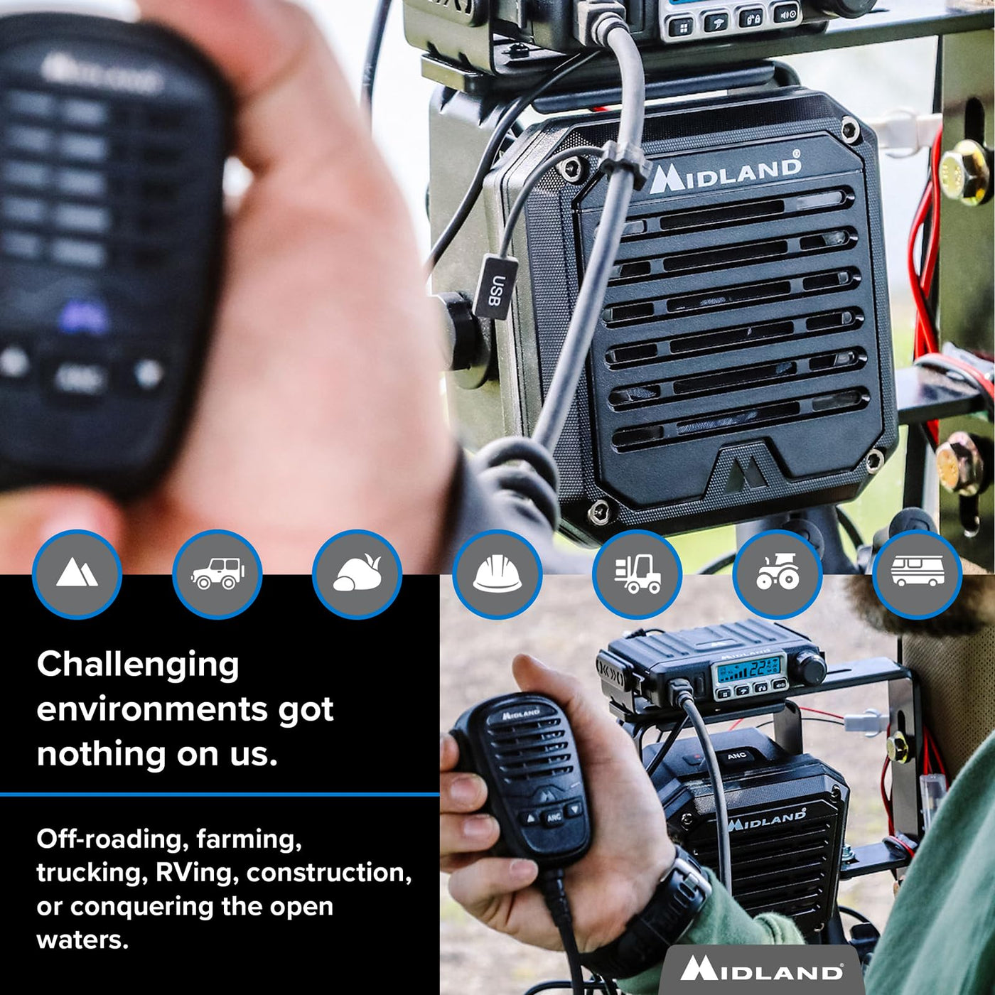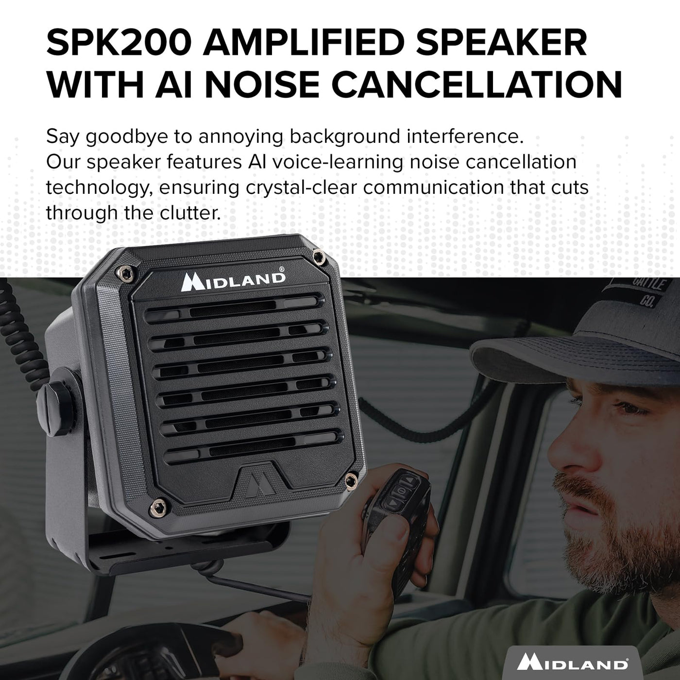 Midland Spk200 Amplified External Speaker With Ai Noise Cancellation, 20 Watts Of Power, 8 Ohms Dynamic Sound, Ip67 Waterproof (Ultimate)