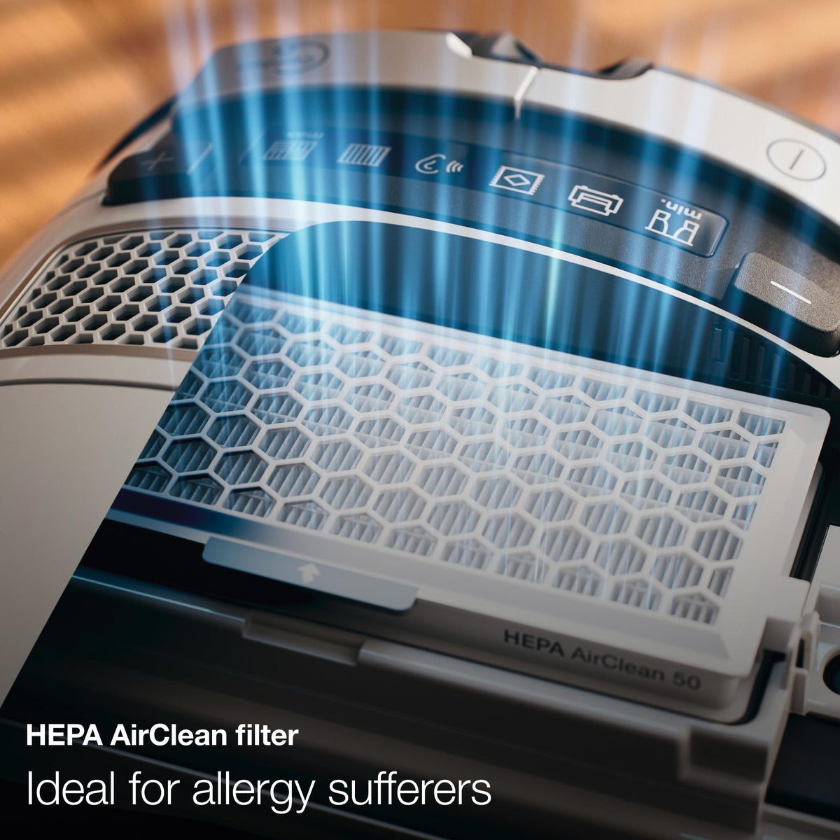 - Maximum Filtration: Equipped with a HEPA Lifetime Filter, this canister vacuum retains up to 99.999% of even the smallest particles, including fine dust and allergens, ensuring maximum air hygiene in your home.