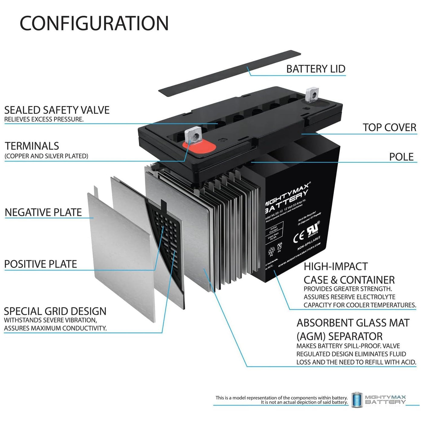 Mighty Max Battery Ml55-12 - 12V 55Ah Sla Battery - Pack Of 2