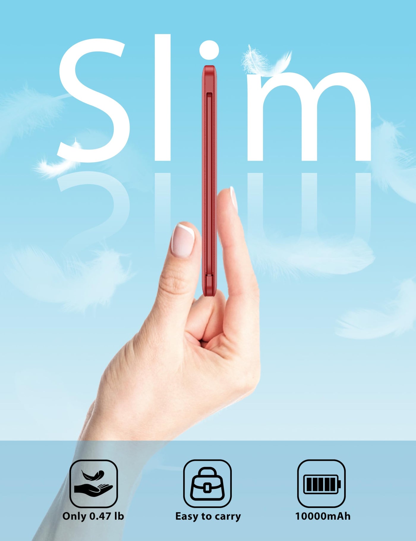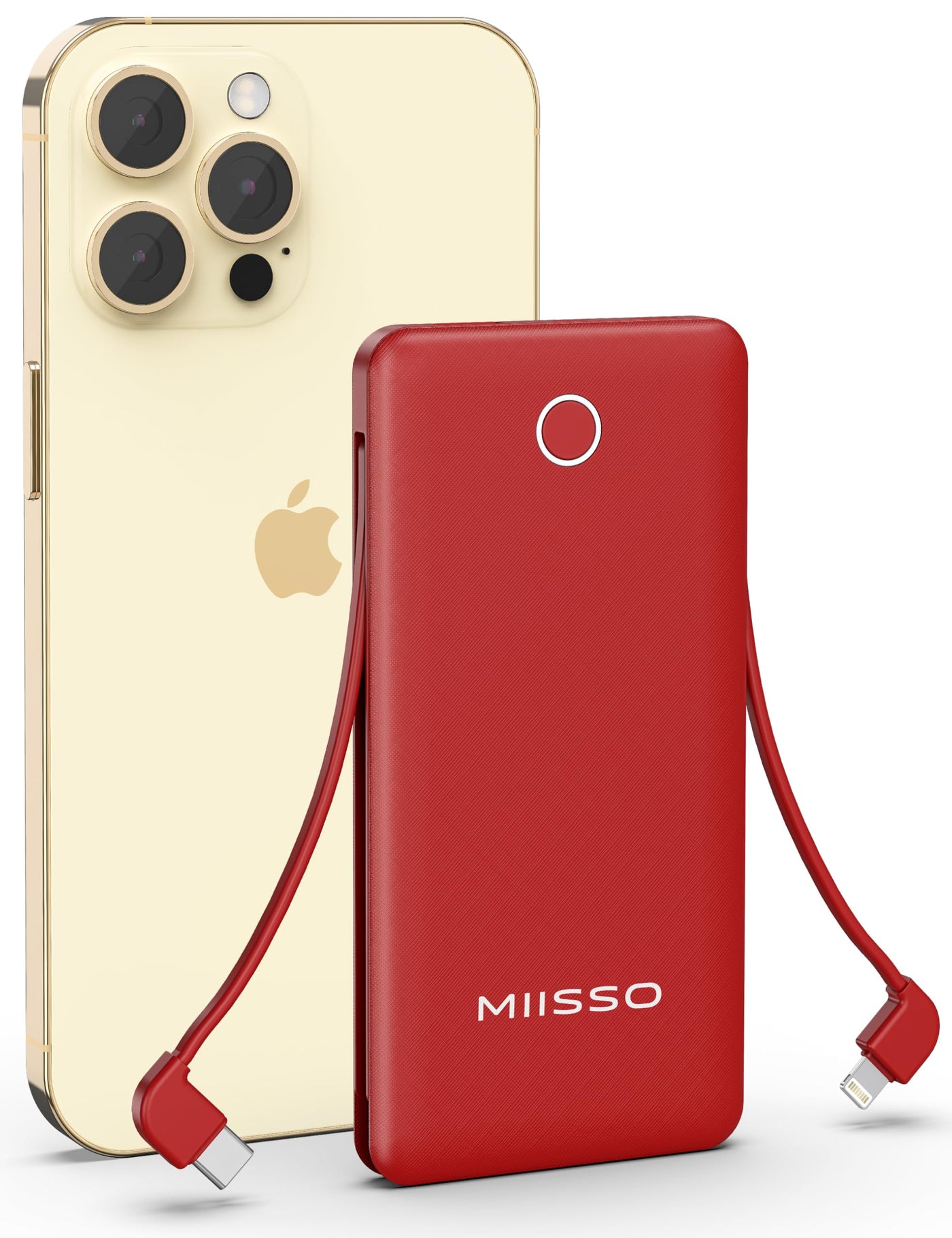 Miisso 10000Mah Slim Portable Charger With Built In Cable, Power Bank Travel Phone Charger External Battery Pack For Phones, 4 O