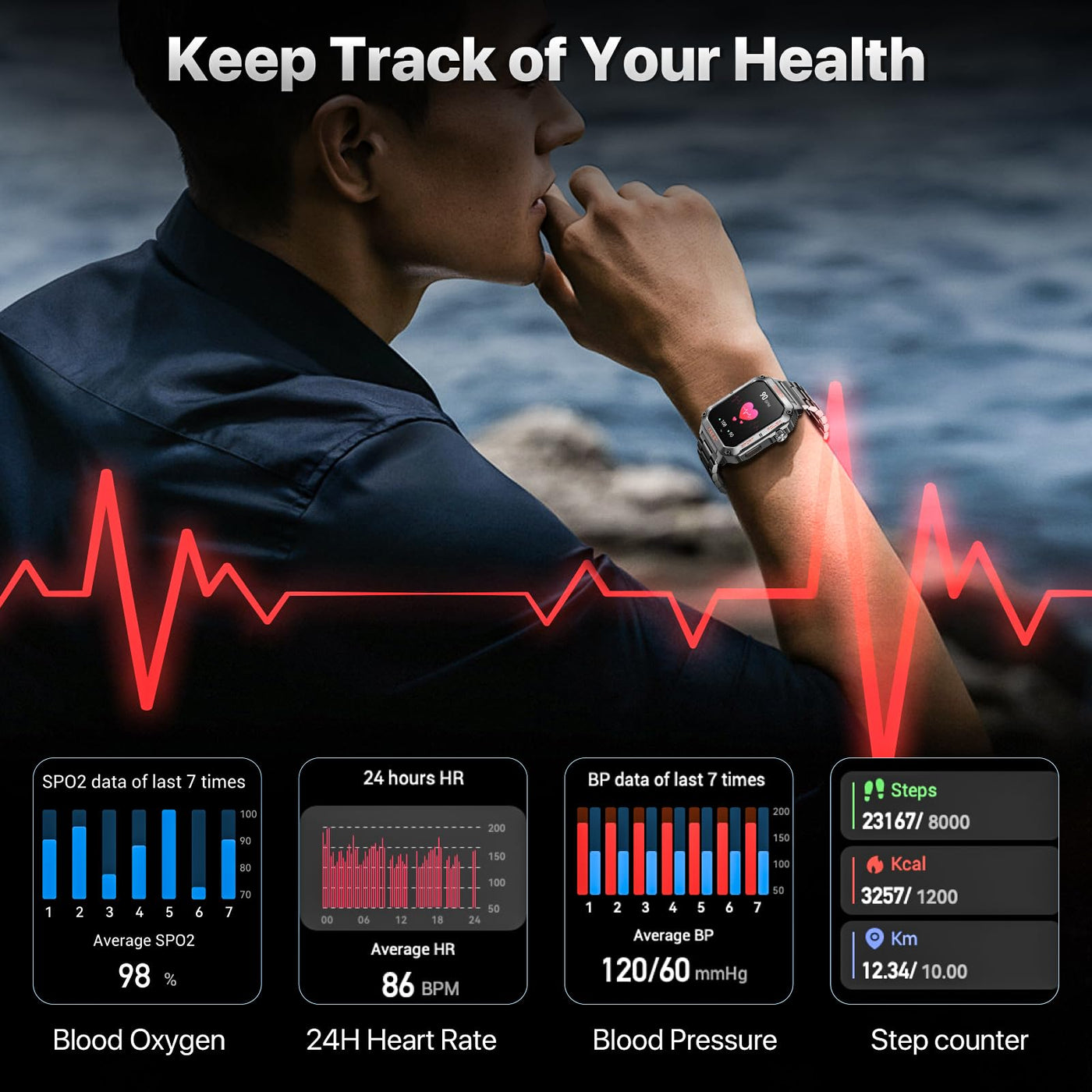 Military-Grade Smartwatch For Men, Fitness Tracker For Android/Iphone, 1.91 Hd Touchscreen, Bluetooth Answer/Make Calls, Ip68 Wa