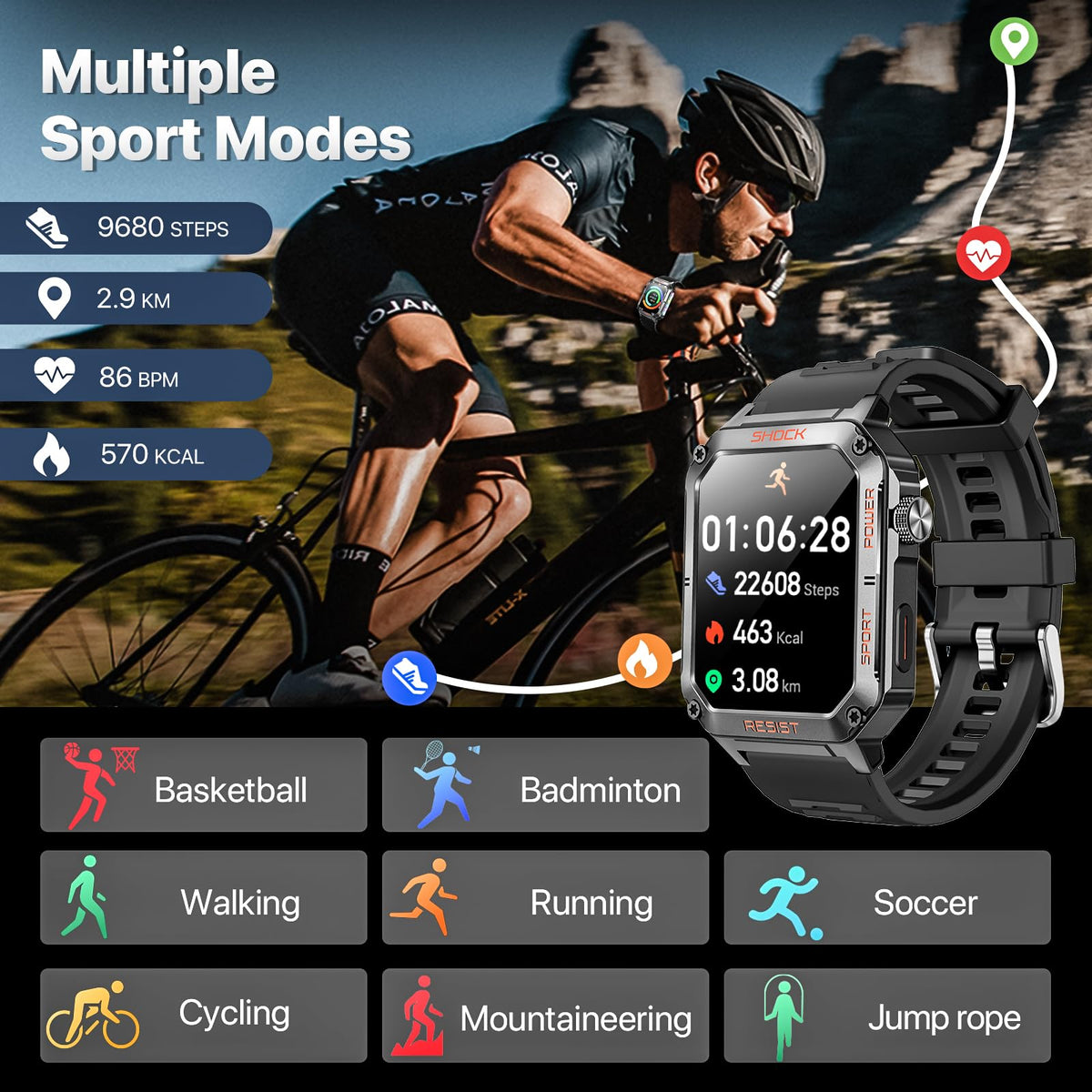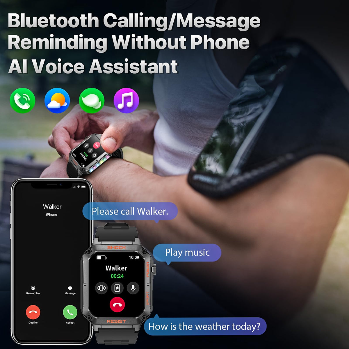 Military Smart Watch For Men, 1.91 '' Hd Screen Bluetooth Answer/Make Calls, Fitness Tracker Watches For Android/Iphone, Ip68 Wa
