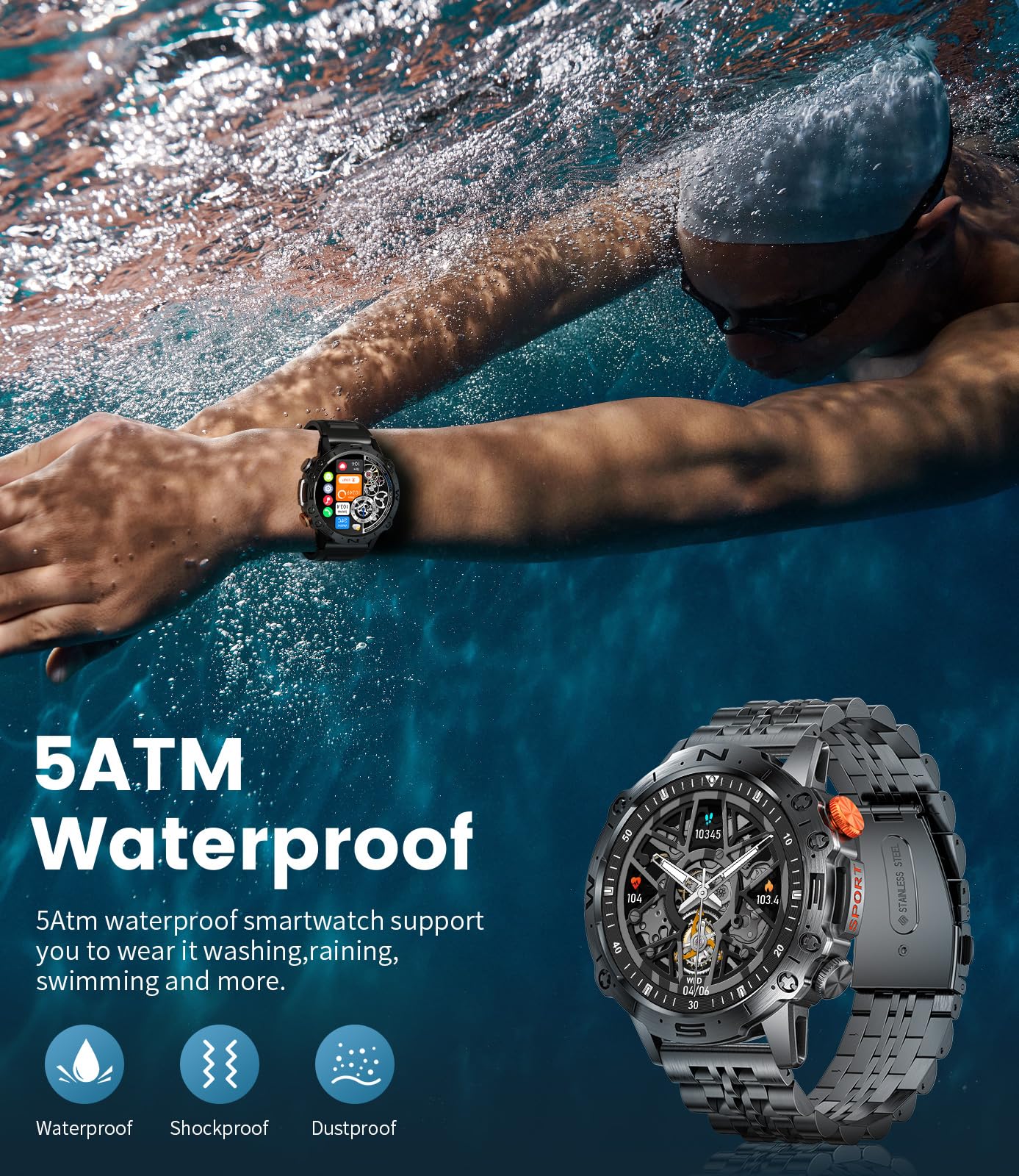 Military Smart Watch For Men(Answer/Dial Calls),1.43 '' Amoled Always-On Display,Fitness Tracker 126+ Sports Modes/Ip68/Heart Ra