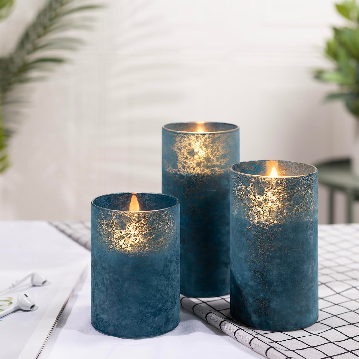 Mingfuxin Blue Flameless Candles With Remote Battery Operated Candle With Timer, Led Indoor Pillar Candles For Home, Christmas