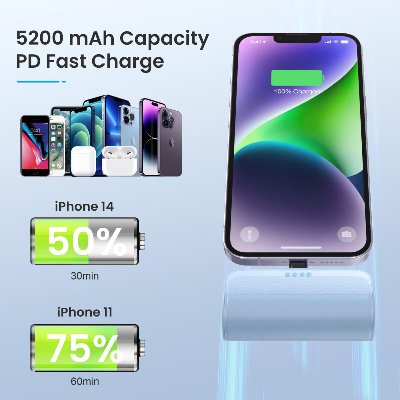 Mini Portable Charger Power Bank For Iphone,5200Mah Phone Charger, Ultra Compact Pd Fast Charging Battery Pack Compatible With I
