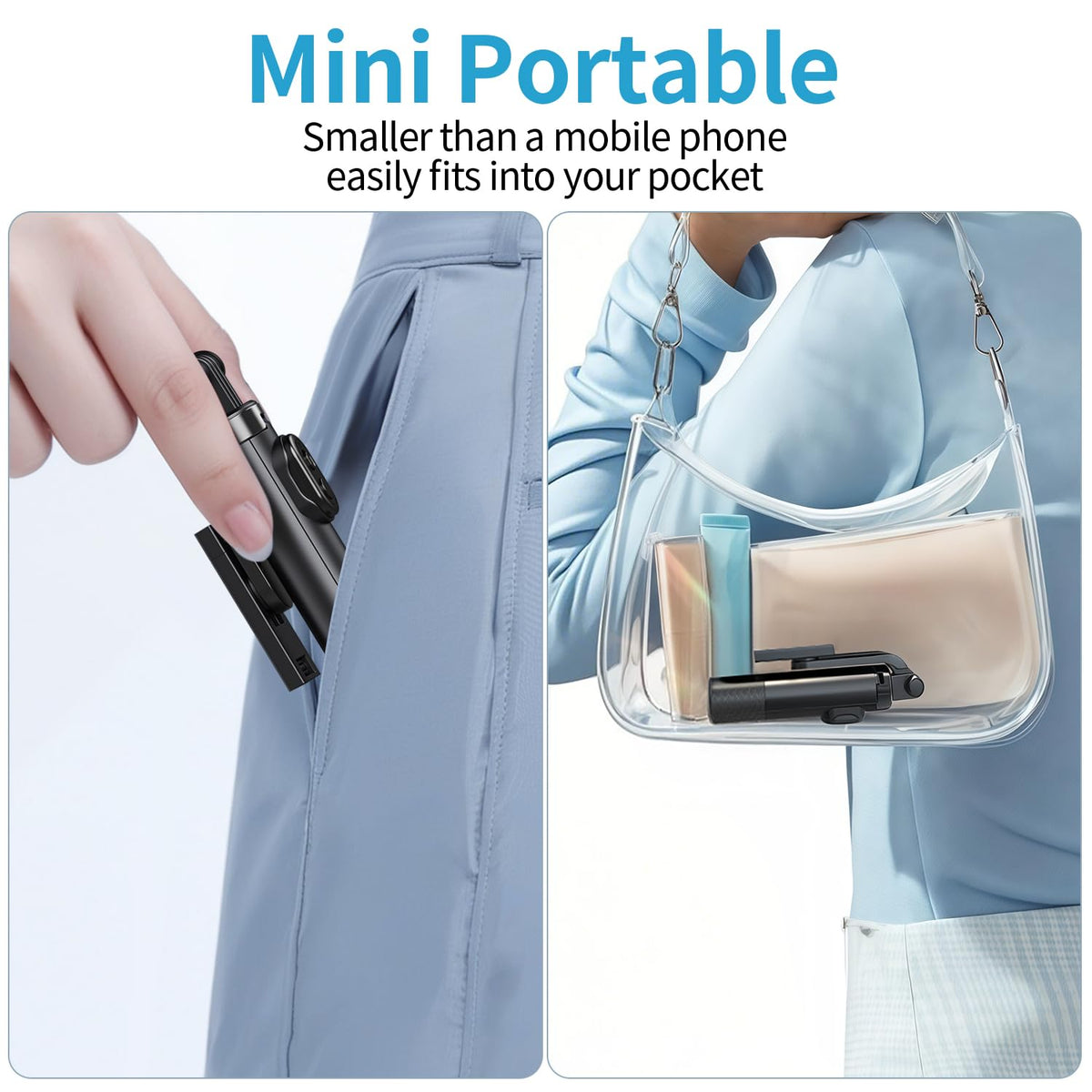 Mini Selfie Stick Tripod, Pocket Flex Tripod I-Phone Android Phone Grip, Portable Small Size Travel Compact Phone Selfie Stick W