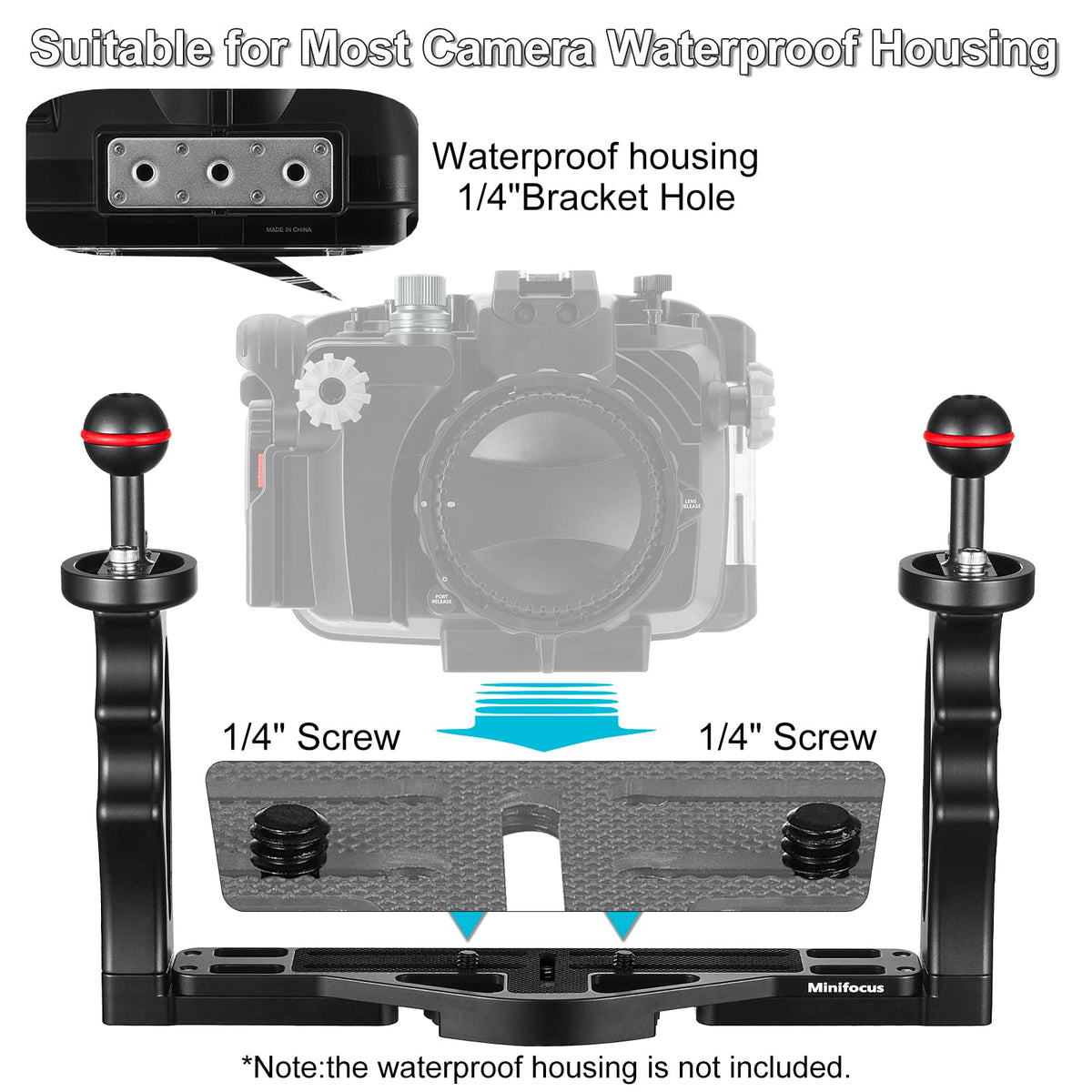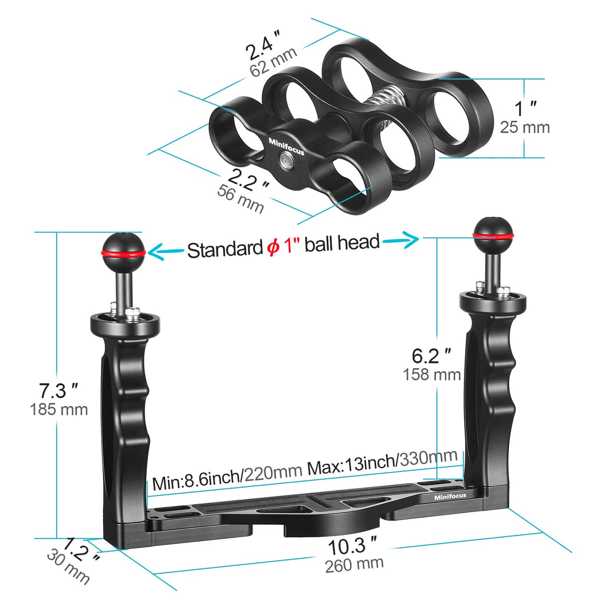 Minifocus Underwater Camera Handle Tray Bracket, Dual Handle Extendable Aluminum Alloy Video Stabilizer Holder With 2 1 Ball C