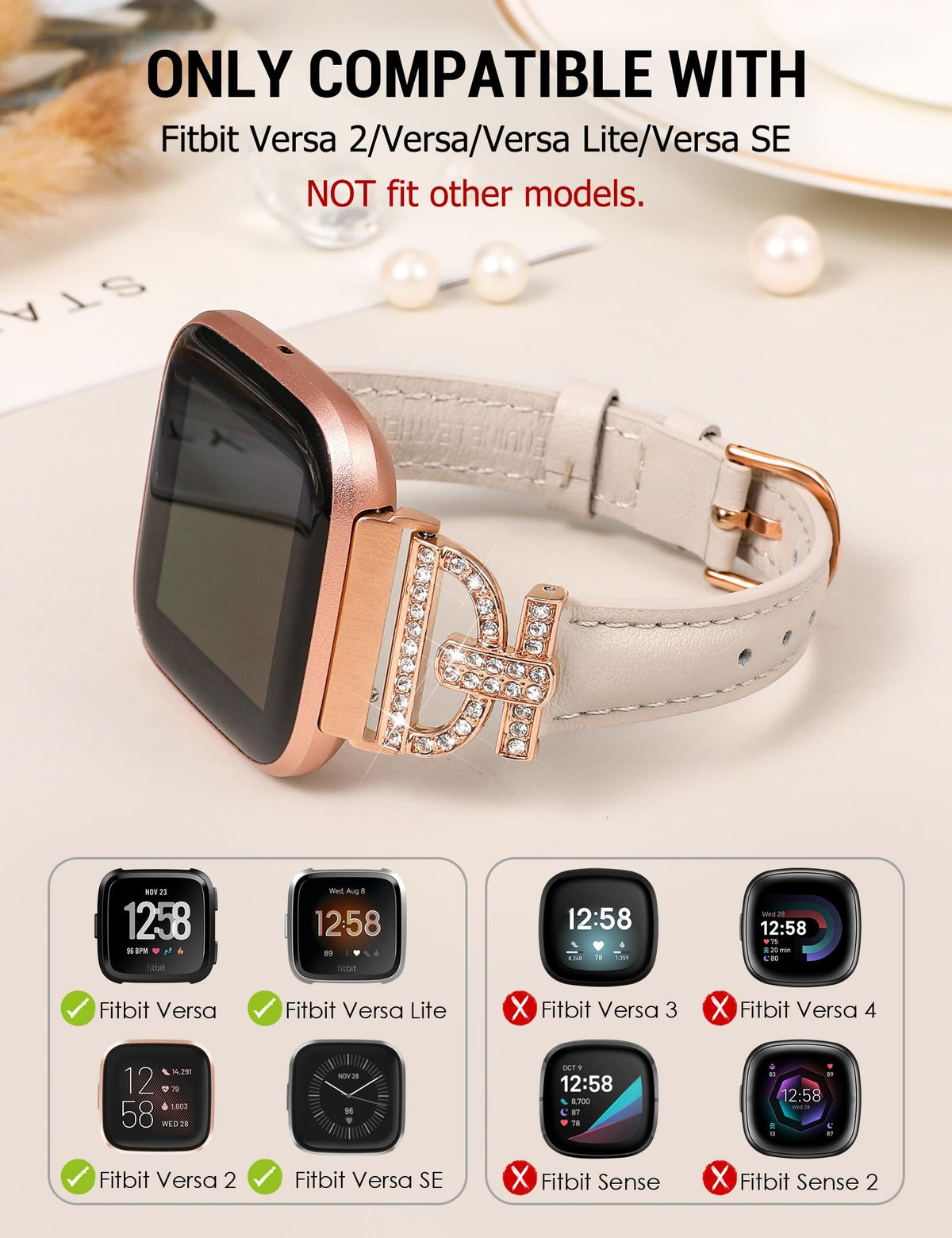 Minyee Leather Bands Compatible With Fitbit Versa 2/Fitbit Versa/Versa Lite Band Women, Dressy Slim Thin Leather Strap With D-Sh