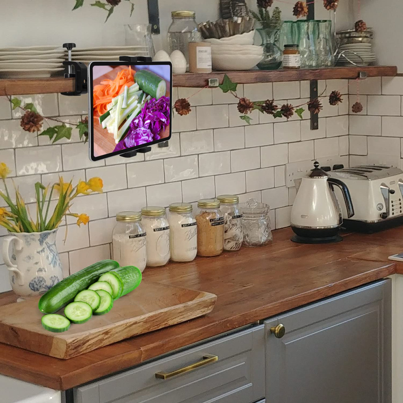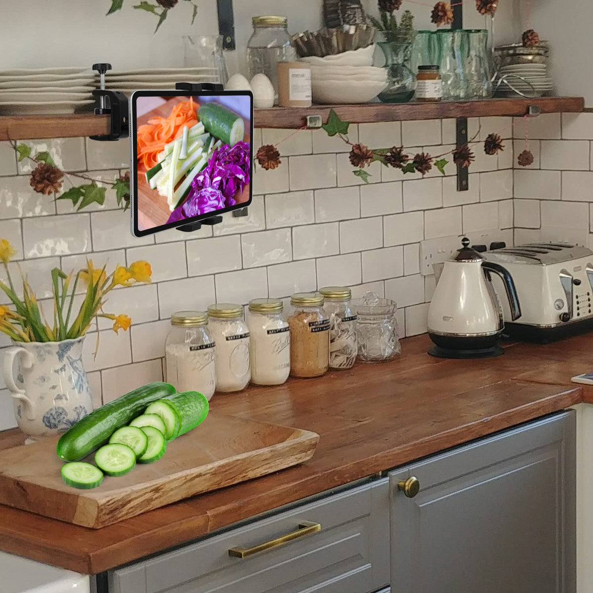 Mippko Kitchen Cabinet Tablet Holder Compatible With 4.7~12.9 Inch Ipad / Nexus / Lg G Pads / E-Reader / Kindle Fire Hd / E-Reader / Switch, 360� Adjustable Aluminum Alloy Arm And Mount,No Drilling Hole,Black