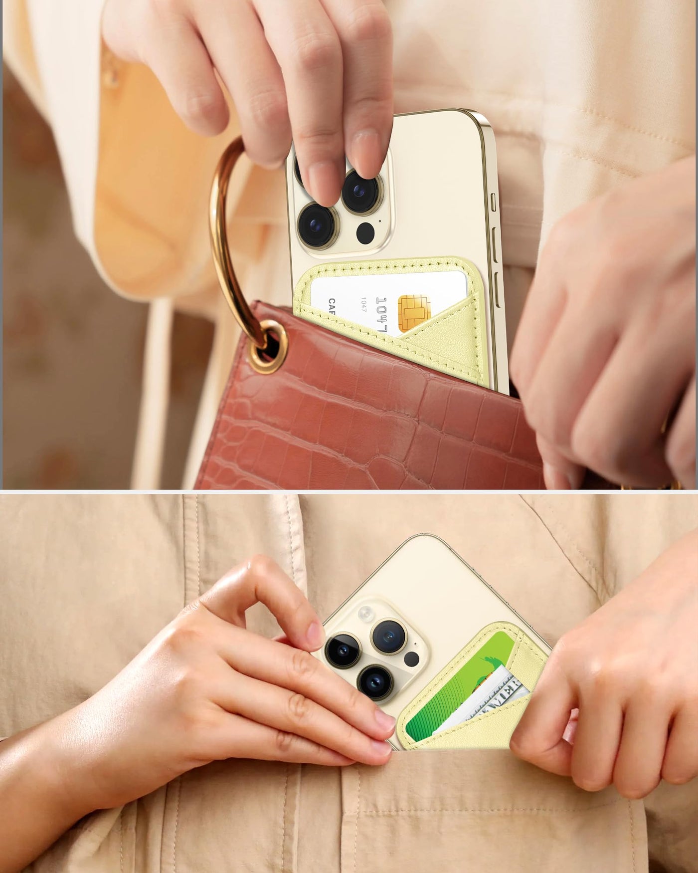 Q: How does the magnetic attachment work with the Miroddi Wallet?A: The Miroddi Wallet features stronger built-in magnets with a magnetic strength of up to 19 N, allowing it to effortlessly snap into place on the back of your phone without falling off.