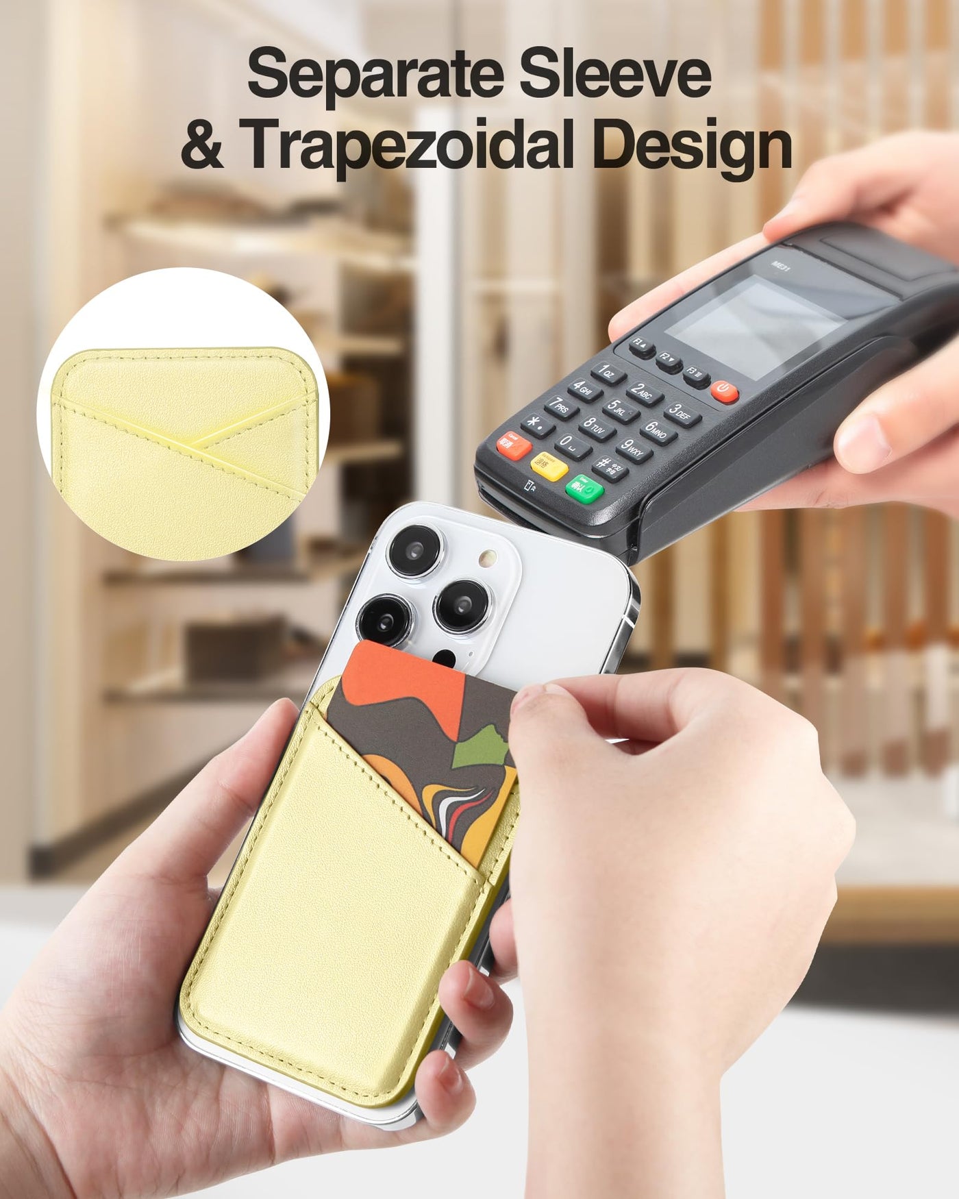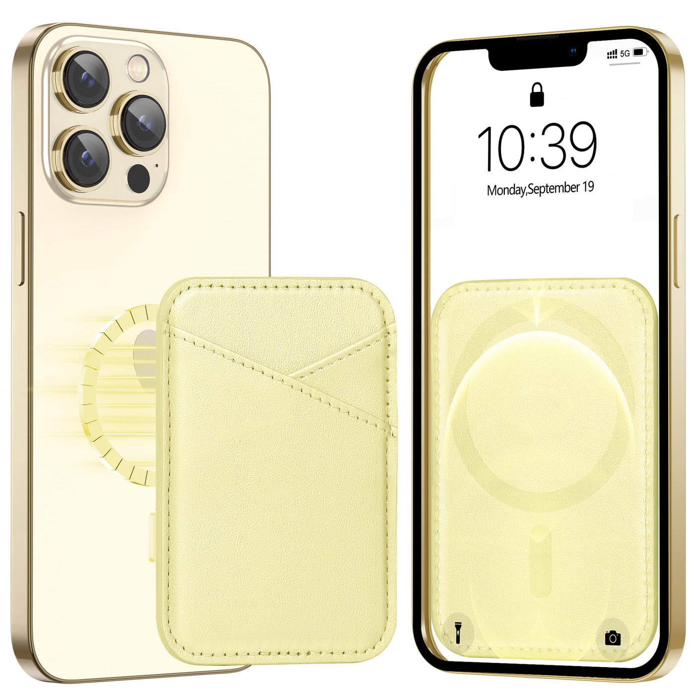 Magnetic Card Wallet Holder, Wallet With Magsafe For Iphone 14/13/12 Series, Wallet Compatiable With Magsafe, Vegan Leather, Independent Card Slot, 3.8''X2.6''X0.1'' Invisible Ultra-Thin [Yellow]