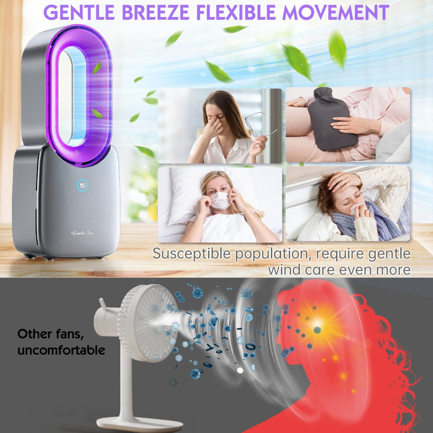 Compared To Traditional Fans, This Desk Fan Adopts Turbine Technology, Which Is A Perfect Combination Of Functionality And Design. You Will Never Worry About The Cooling Hurting Fingers, Safe For Babies, Kids, And Pets. Besides, Due To The Bladeless Design, This Small Fan With A Colorful Gradient Light That Creates Different Effects To Suit Your Mood, In Addition, A Kid-Friendly & Soft Led Will Help To Illuminate If Your Kids Are Afraid Of The Dark, Gentle Breeze Will Keep You Away From The Sultry Air, Cooling Fan Easy To Clean, Saving You A Lot Of Time. This Table Fan Is Small And Light, You Could Easily Take It Anywhere You Like. What'S More, When Working, This Personal Fan Does Not Produce Annoying Noise And Is Very Quiet. So Whether You Need A Bedroom Fan, Office Fan, Desk Fan, Or Dorm Fan, This Bladeless Fan Is The Perfect Solution. This Desk Fan Bladeless Adopts Intelligent Touch Control, Fashionable And Convenient. By Touching The Control Key, You Can Easily Adjust The Wind Speed According To Your Preference, Creating A Cool And Comfortable Environment For Yourself. This Personal Fan Provides Powerful Airflow To Help Keep Your Space Comfortable While Reducing Energy Costs. In Hot Summer, Whether You'Re Working At The Office Or Studying At Home, This Desk Fan Will Be An Ideal Companion, It Will Create Better Air Circulation, And The Breeze Produced Gently Caresses You, Soothing Irritability, Refreshing Your Mind, Effectively Improving Your Attention And Efficiency. Misby Strives To Develop And Provide Our Customer With Stylish And High-Quality Table Fans And Attach Great Importance To Their Experience. If You Have Any Questions At Any Time, Please Feel Free To Contact Us. We Will Give You A Satisfactory Solution Within 12 Hours.