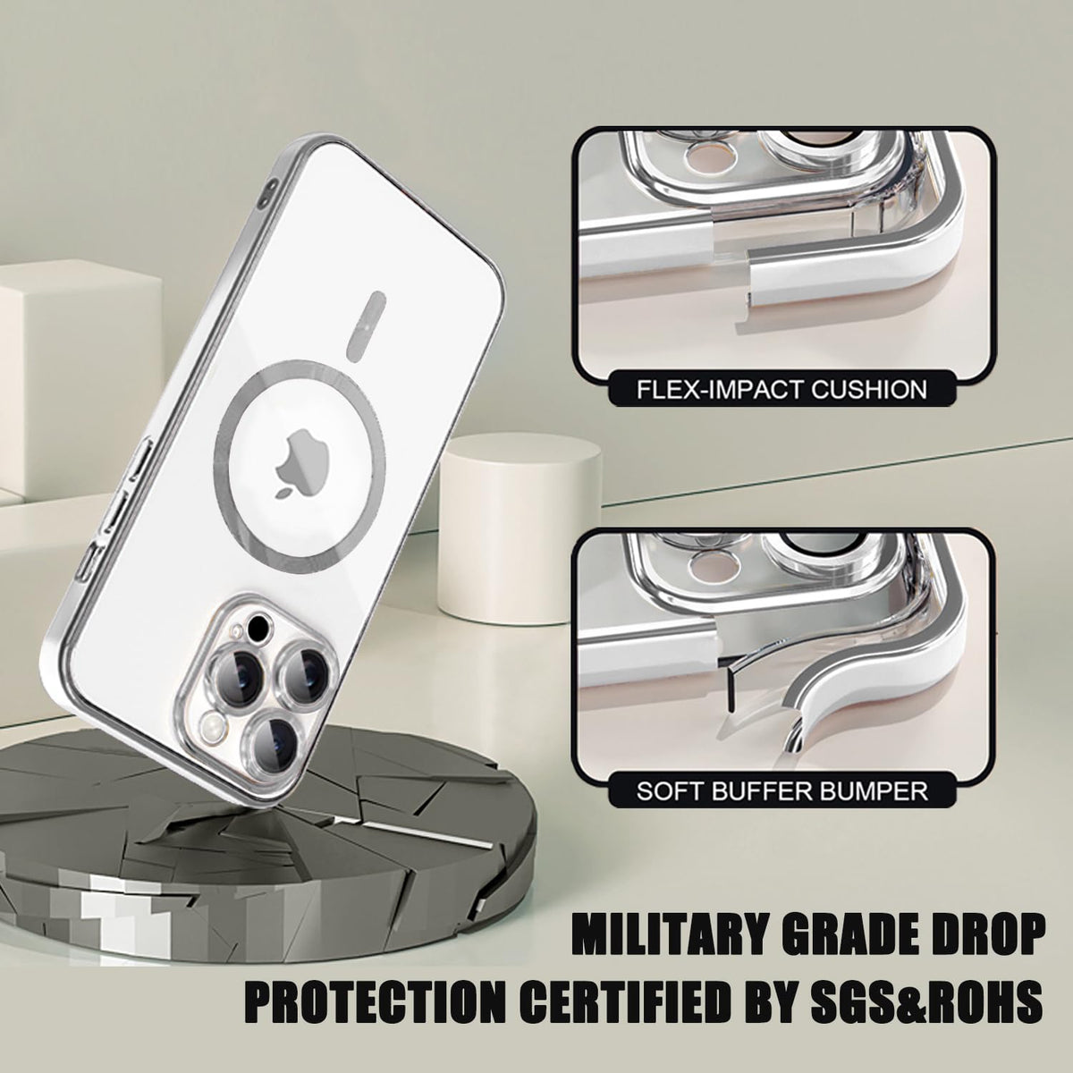 Misscase Compatible With Iphone 14 Pro Max Case Magsafe,Magnetic Clear Case With Camera Lens Protector Full Protection Case Compatible With Magsafe Elegant Anti-Scratch Case Cover For Iphone 14 Pro Max Silver