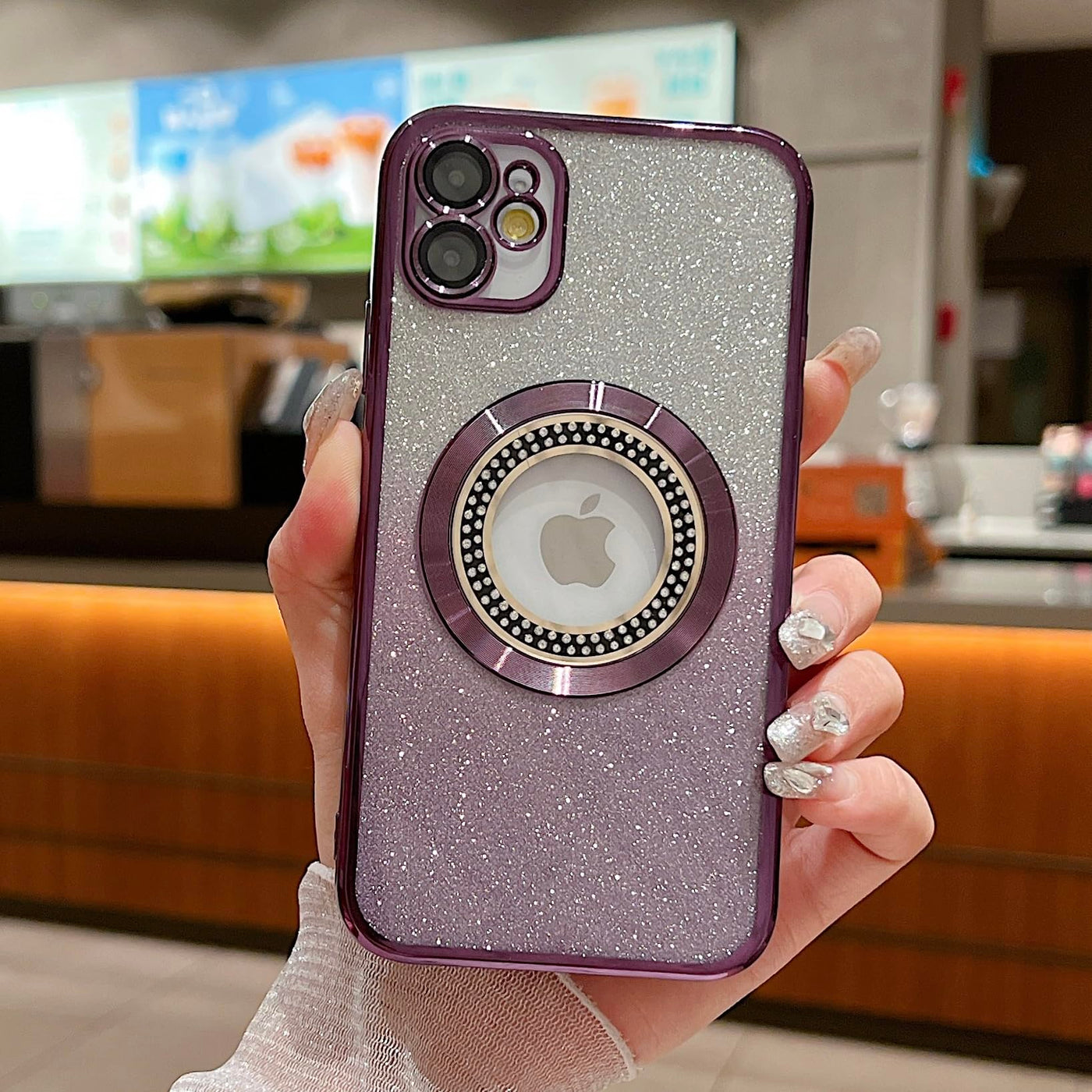 Misscase For Iphone 11 Magnetic Glitter Case Compatible With Magsafe,Full Protection Slim Shockproof Anti-Scratch Diamond-Bordered Case With Camera Lens Protector Logo View Dust-Proof Net For Women Purple