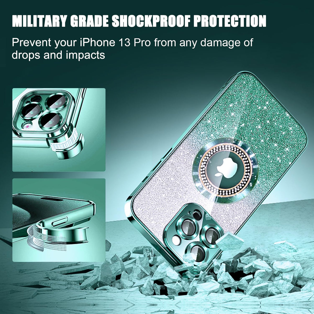 Misscase For Iphone 13 Pro Magnetic Glitter Case Compatible With Magsafe,Full Protection Slim Shockproof Anti-Scratch Case With Camera Lens Protector Logo View Dust-Proof Net For Women