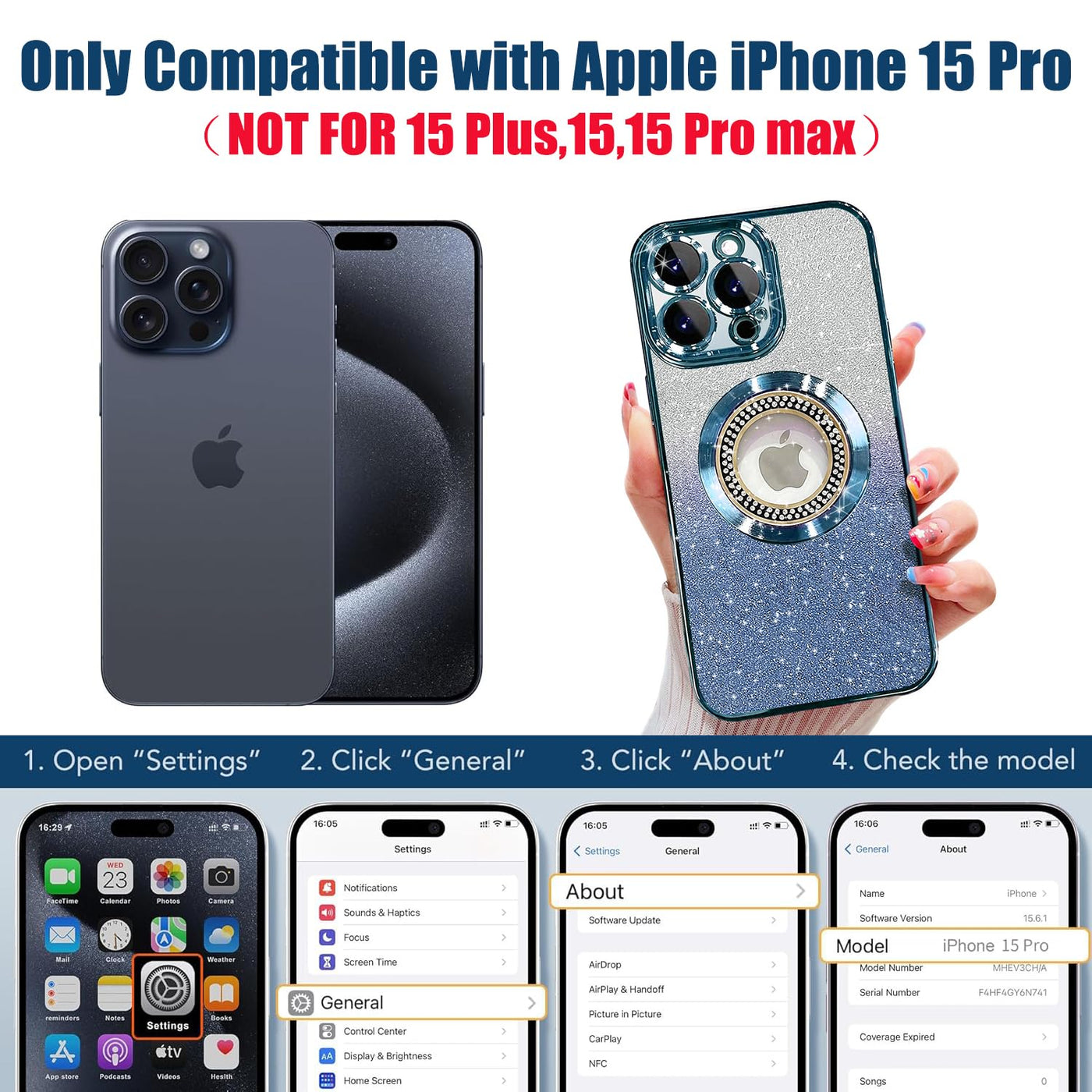 Misscase For Iphone 15 Pro Magnetic Glitter Case Compatible With Magsafe,Full Protection Slim Shockproof Anti-Scratch Case With Camera Lens Protector Logo View Dust-Proof Net For Women